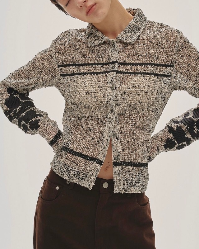 表情豊かな特殊な糸で織り上げたメッシュシャツ。ヴィンテージライクな透け感で、袖にあしらわれた配色の柄刺繍は、職人の手仕事を感じさせる繊細なディテール。リラックス感がありながらもどこかモードな雰囲気で、シンプルなボトムスと合わせるだけでスタイリングに抜け感とこなれ感をプラスしてくれます。 【素材】 綿46% ポリエステル38% ナイロン12% レーヨン4% 別布:綿100% 刺繍糸:ポリエステル100% Color:ブラック Size:フリー 【サイズ詳細】 画像一覧をご覧ください ▶︎伸縮性 あまりなし ▶︎透け感 あり ▶︎生地感 シャリっとした手触り ▶︎クリーニング推奨 TODAYFUL(トゥデイフル)一覧はこちら ⇨https://polne.base.shop/categories/5657251 ※ご購入に際して※ ご購入前に特定商取引法に基づく表記を必ずお読みください。 ○実店舗と在庫を共有しているため在庫がご用意できかねる場合がございます。当店からのメールにて確定させていただきますのでご了承ください。 ○オンラインストアの画像は実際の商品と近いよう確認してから掲載しておりますが、撮影時の照明や閲覧時のモニター・ディスプレイ等の影響により多少のイメージの差異が発生することがございます。 ○平置きで採寸しておりますので若干の差が生じる場合がございます。 ○デニム製品、濃色製品につきましては、色落ちや色移りにご注意ください。 polne No : 12520404