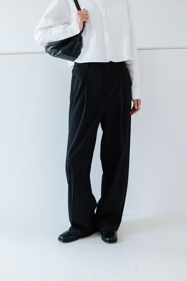 Studio Doe/High-Rise Curved Trousers(Cocoon wide Trousers)