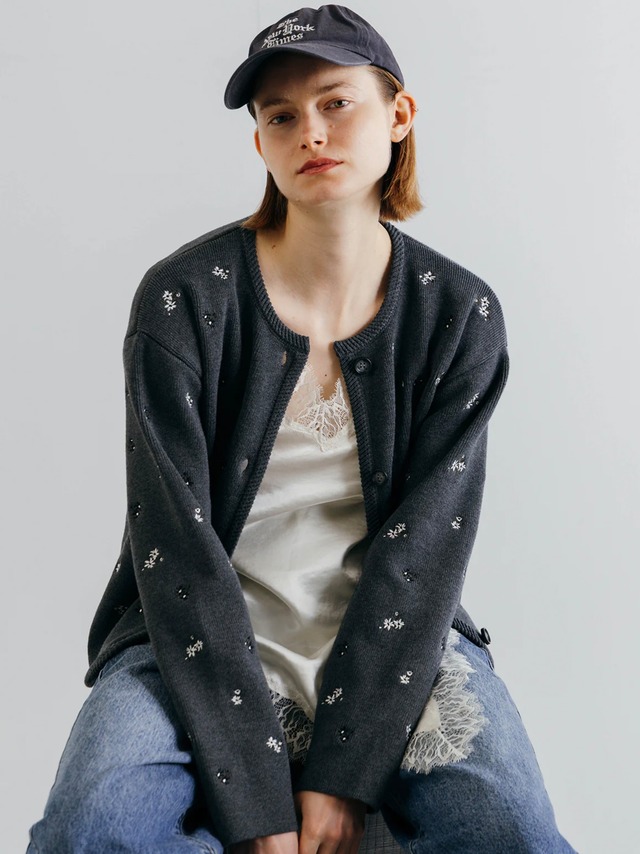コットンベースの糸でカーディガンのように伸縮性があり快適な着心地をがありながらも、高い密度で素材を編立ることで、張り感を与えきちんと感も。 アーティスティックな小花の刺繍を散りばめ、華やぎを添える一枚です。 【素材】 アクリル40% 綿40% ナイロン20% Color:グレー/ブラック Size:フリー 【サイズ詳細】 画像一覧をご覧ください ▶︎ご自宅での手洗い 可 ※ご購入に際して※ ご購入前に特定商取引法に基づく表記を必ずお読みください。 ○実店舗と在庫を共有しているため在庫がご用意できかねる場合がございます。当店からのメールにて確定させていただきますのでご了承ください。 ○オンラインストアの画像は実際の商品と近いよう確認してから掲載しておりますが、撮影時の照明や閲覧時のモニター・ディスプレイ等の影響により多少のイメージの差異が発生することがございます。 ○平置きで採寸しておりますので若干の差が生じる場合がございます。 ○デニム製品、濃色製品につきましては、色落ちや色移りにご注意ください。 polne/hacro