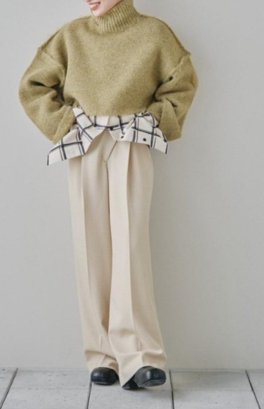 シンプルなトップスをインして着ていただくのはもちろん、オーバーサイズのニット等との合わせもおすすめです。
