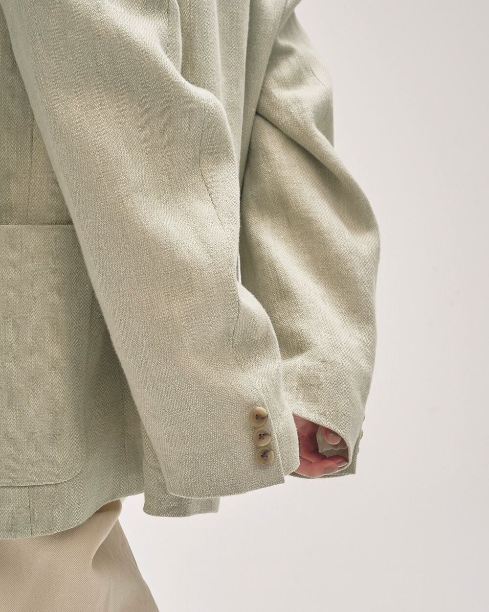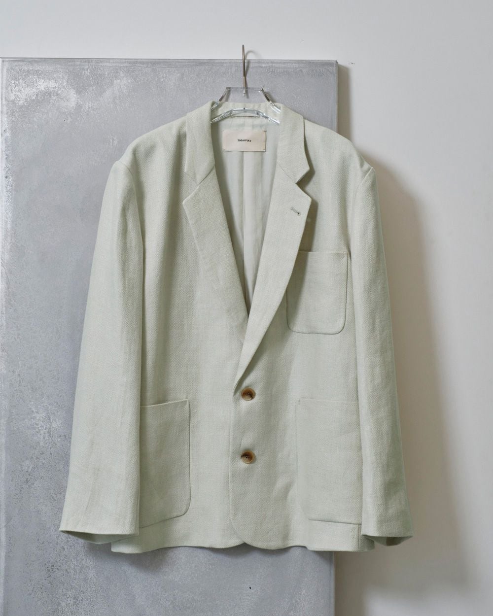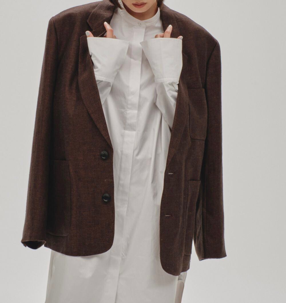 奥行きのある色味とリネン特有の張り感や艶、表情感が魅力のオリジナル生地を使用したジャケット。TODAYFULが得意とするオーバーサイズで、マニッシュな雰囲気漂うシルエットが目を惹く一枚。ワンピース等に羽織るのはもちろん、同じ生地を使用したTuck Linen Trousersとセットアップで着るのもおすすめです。