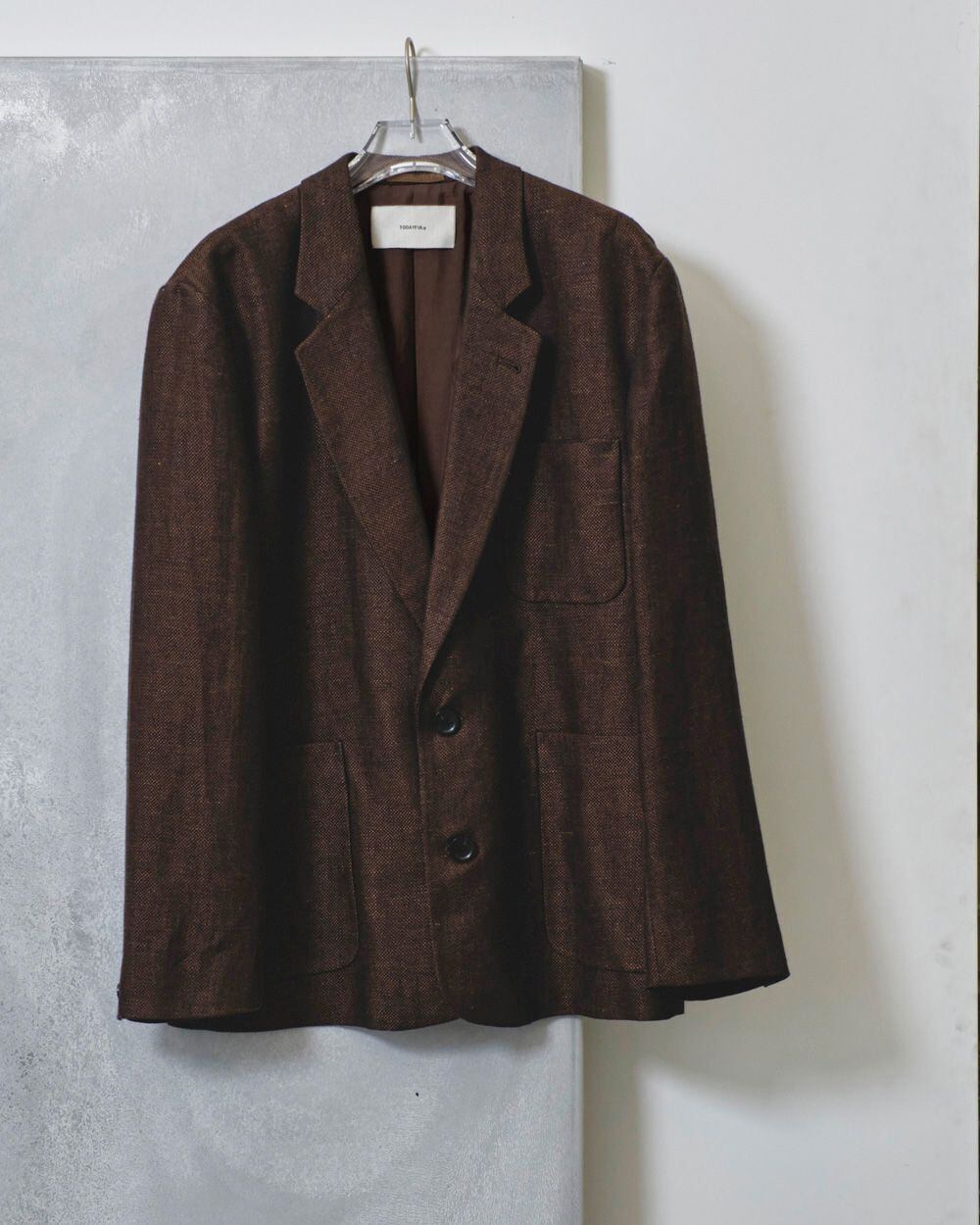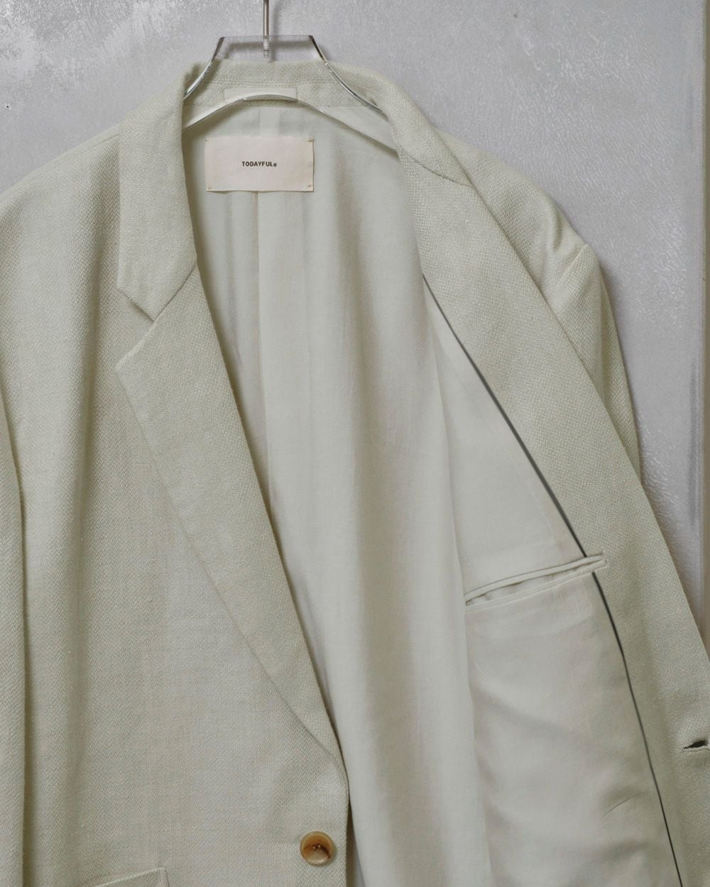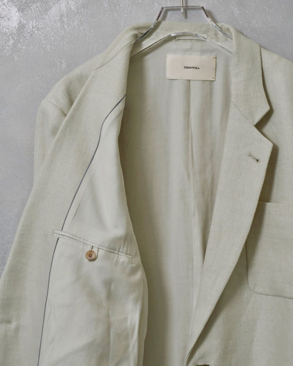奥行きのある色味とリネン特有の張り感や艶、表情感が魅力のオリジナル生地を使用したジャケット。TODAYFULが得意とするオーバーサイズで、マニッシュな雰囲気漂うシルエットが目を惹く一枚。ワンピース等に羽織るのはもちろん、同じ生地を使用したTuck Linen Trousersとセットアップで着るのもおすすめです。