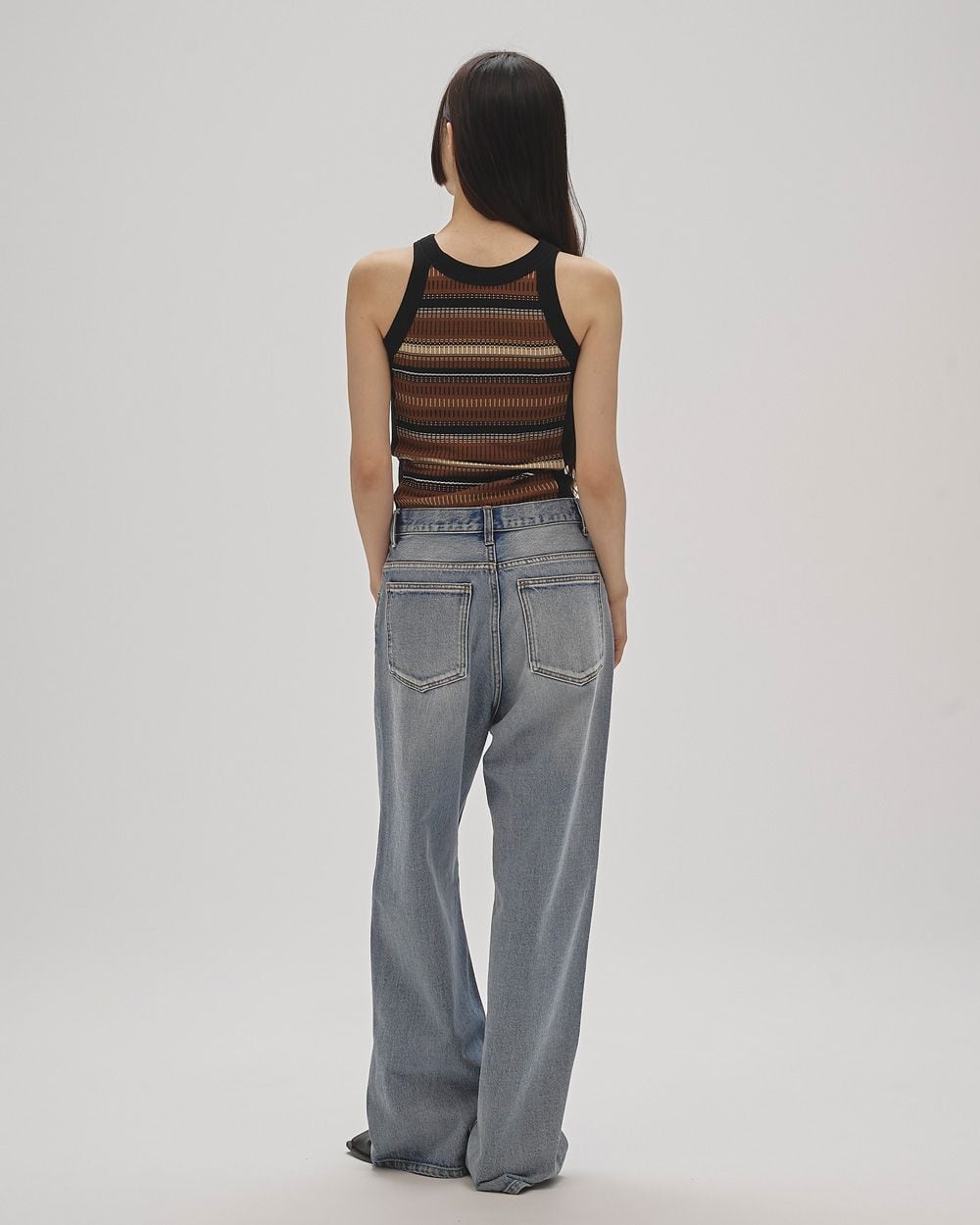 ストレートラインで全体的にゆるっとしたルーズ感のあるシルエットが魅力のデニム。腰履きで履いていただくのがおすすめです。生地端を贅沢に使用しているため、裾を折り返しても履いていただけるよう、少し長めの着丈にしています。
