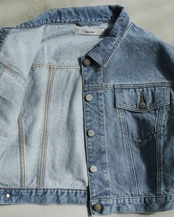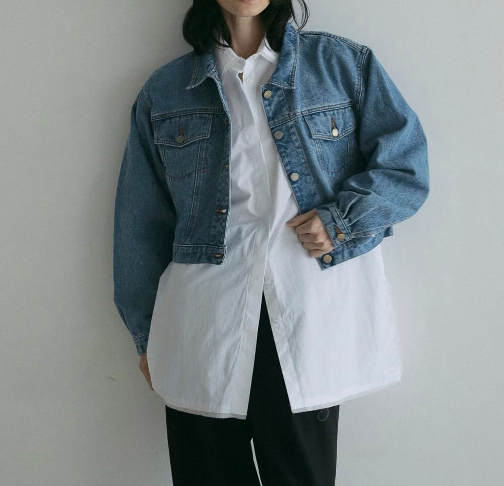 ヴィンテージ感あるブルーカラーのデニムジャケット。ワンピースや幅広いボトムと合わせやすいショート丈。ワイドシルエットに仕上げることで、抜け感あるスタイルに決まります。シャツやスラックスと合わせたり、マニッシュな着こなしがおすすめです。