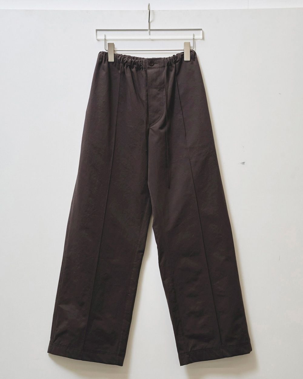 マットな質感と程良いハリを持つコットン生地を使用したイージーパンツ。センタープレス見えのピンタックが縦のラインをすっきりと見せ、カジュアルなウエストデザインが程良い抜け感に。少し腰を落として履くことで、自然なこなれ感が生まれます。
