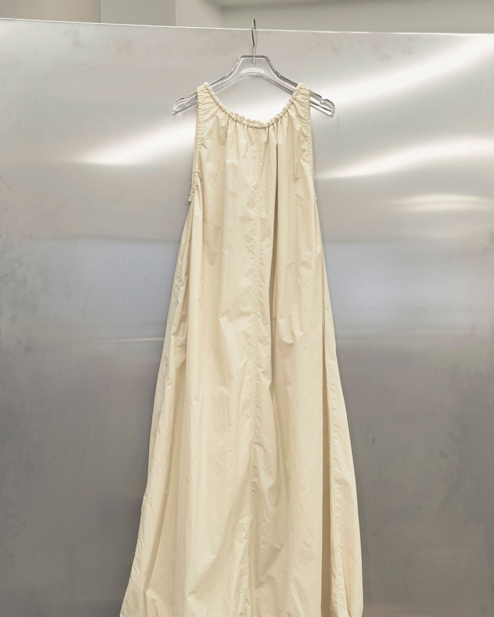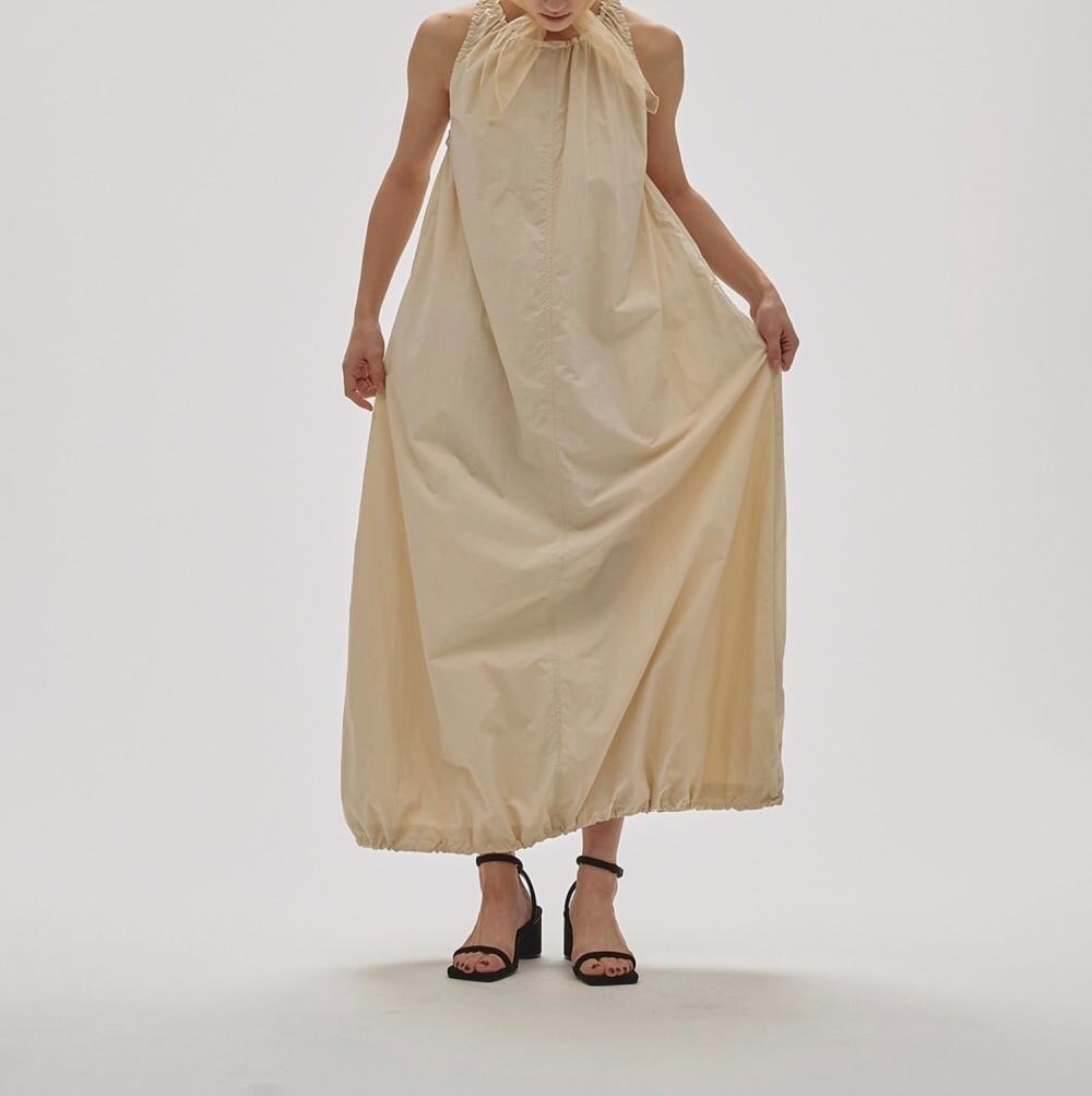 バルーンシルエットが魅力のドレス。ギャザーをふんだんに寄せて生地を贅沢に使用しました。軽やかでさらっとした質感の生地なので真夏も過ごしやすいです。肌ざわりのいいメッシュ素材の裏地つき。