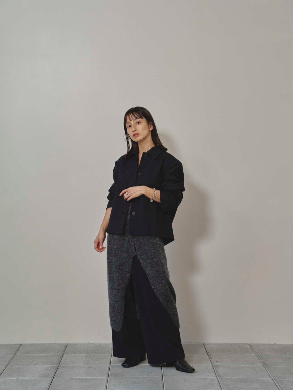 モヘア混の糸を使用して編まれたニットラップスカート。フロントにふんだんにあしらった華奢なボタンや程よい透け感が女性らしく、シンプルなボトムスにレイヤードするだけでこなれた印象に。同じ糸を使用して編まれたWoolmohair Turtle Knitvestとセットアップで着るのもおすすめです。