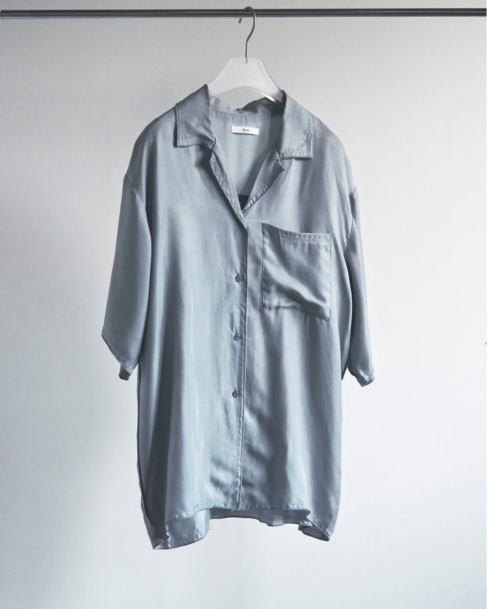落ち感のある柔らかく滑らかな素材で仕上げた開襟シャツ。オーバーなシルエットで抜け感ある着こなしに。細かなステッチワークと端を繊細なメロウ始末で仕上げ、シンプルながら、さりげないディテールが際立つ一着。同素材のMellow Maxi Skirtとセットアップでの着用もおすすめです。