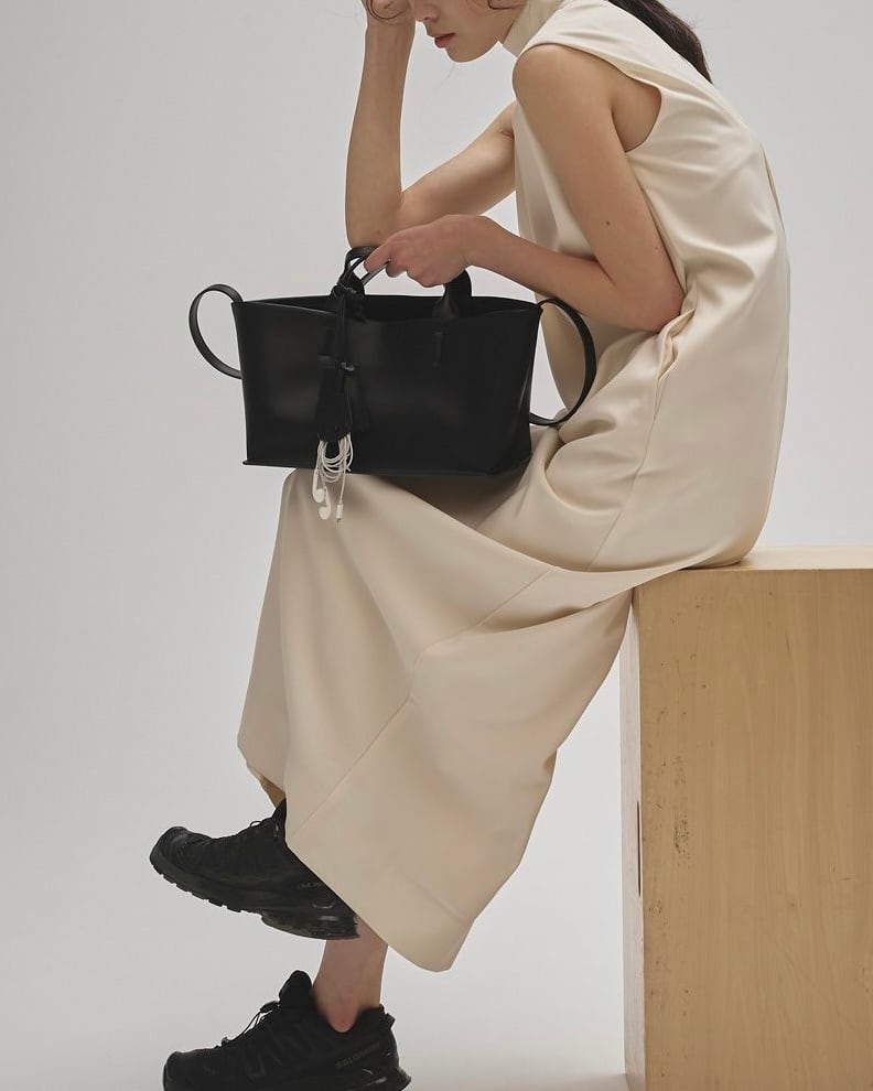 同じ素材で仕立てた鍵などを付けられるチャームやボックスシルエットのボディが目を惹くアイテム。ショルダーストラップ付きで、肩掛けでも手持ちでも使える2way仕様。デイリーからオケージョンまで幅広いシーンに馴染みます。