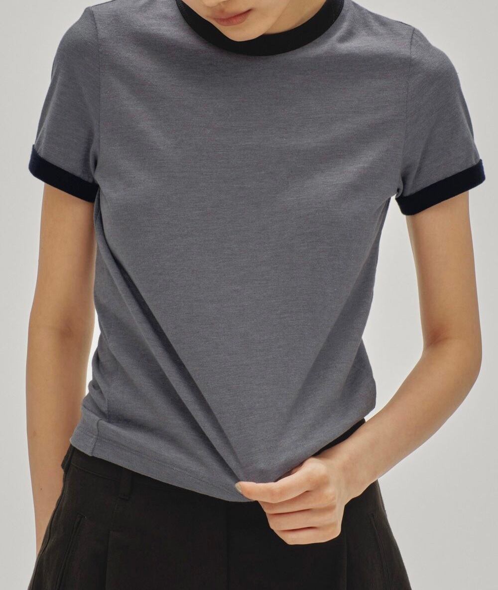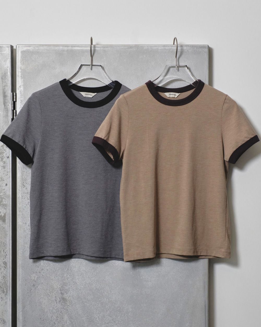 カジュアルな表情にシャープさを加え、ほどよい柔らかさが特徴の生地を使用したTシャツ。コンパクトなサイズ感に仕上げました。身頃の杢色とリブの配色とのコンビネーションがポイント。ボリュームのあるボトムスとの相性が良く、様々なスタイリングに馴染みます。