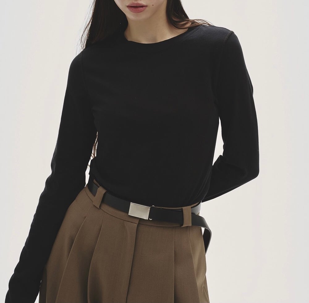 清涼感のあるカットソー素材を使用したロングTシャツ。肌離れのよい軽やかな生地感と、体に程良く沿うタイトなシルエットが魅力。袖丈・着丈ともにやや長めで、アウトスタイルで裾をラフにたるませる着こなしがこなれた印象に仕上がります。ミニマルなデザインなのでボトムスのシルエットを選ばず、様々なスタイルに馴染みます。