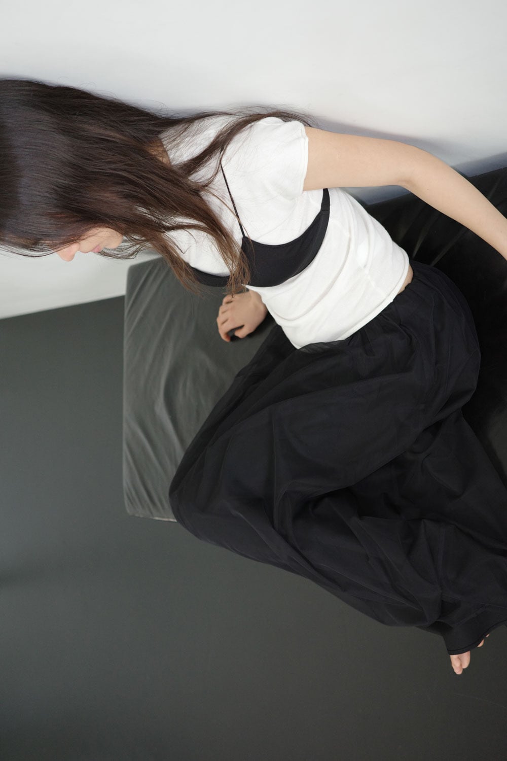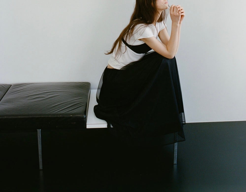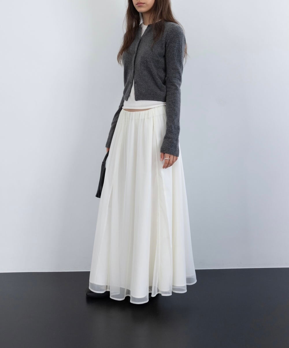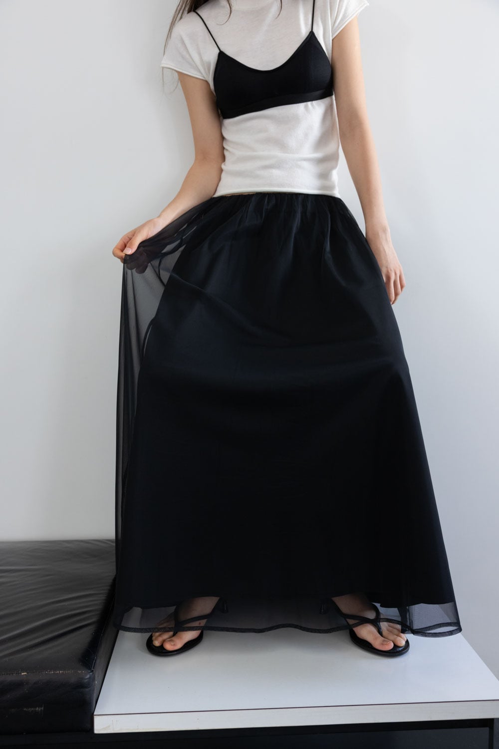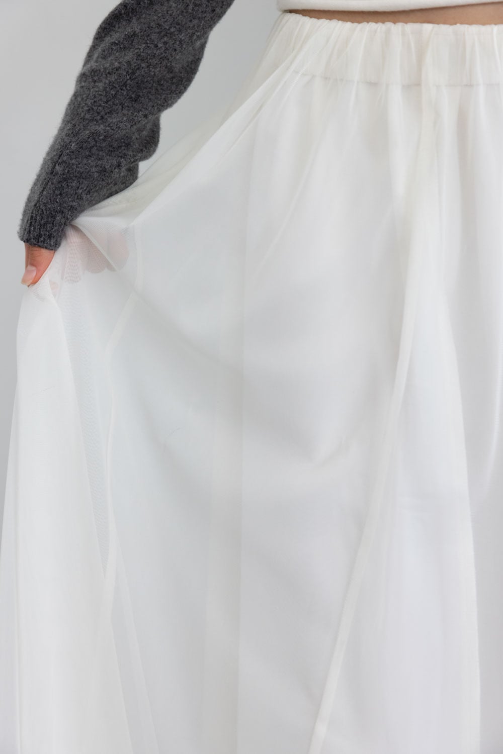 両面のリバーシブルのスカートは、透けない素材とチュールのドッキング