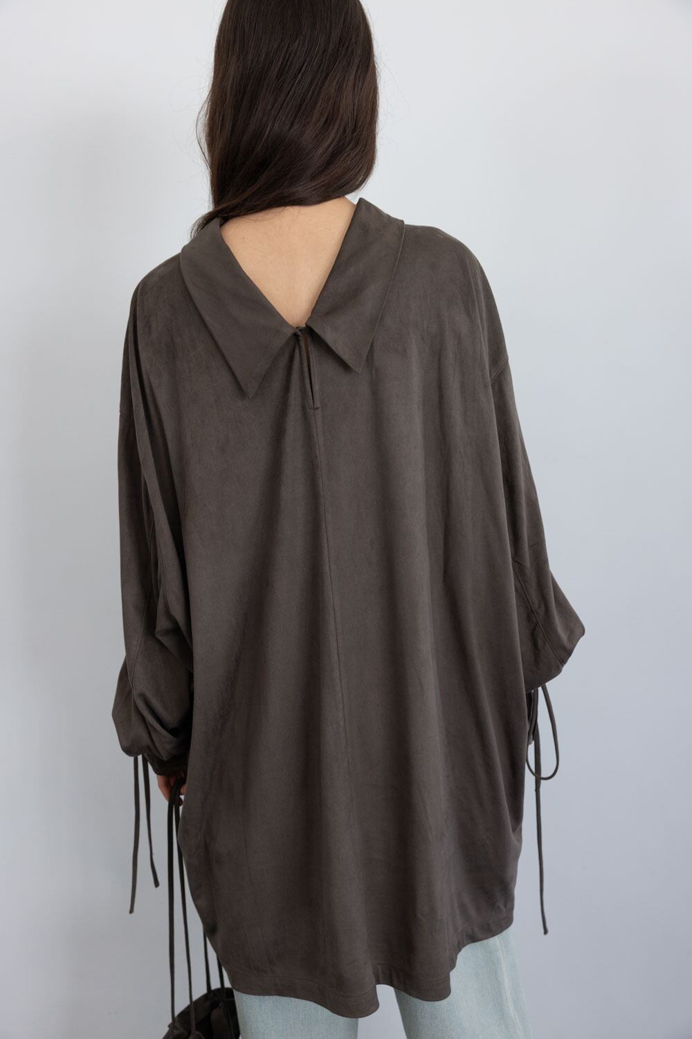•やや高い襟のデザインと背面のVネックカットはシンプルでありながらワンポイントに