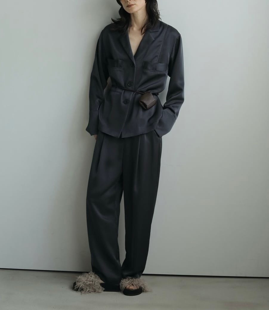 綺麗目なスタイリングとも相性良く、オケージョンシーンにもおすすめです。同素材のSatin Tuck Pantsとセットアップでラフに着ていただくのも◎