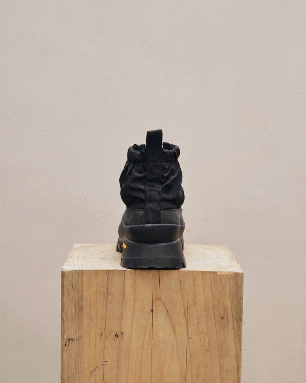 3種類の生地を贅沢に使用したスニーカー。脱ぎ履きしやすいゴム状のコードストッパーは、フィット感の調整が可能。全体にギャザーを寄せたアッパーが、ほど良いボリューム感を生み出します。足首がすっきりと見える履き口で、パンツ・スカートスタイルなど幅広いスタイリングに馴染みます。