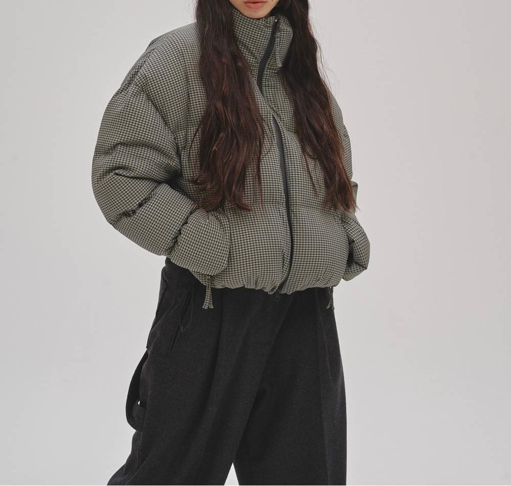 国内のワッシャー感のあるチェック生地を使用したダウンジャケット。程良いボリューム感と丸みのあるシルエットがカジュアルなアイテムでありながらも女性らしく着こなせる一枚。首元まで覆うスタンドネックは寒さをしっかりとガードしてくれます。オリジナルで染め上げたカラーも魅力でシンプルなスタイリングに合わせるだけでこなれた印象に。