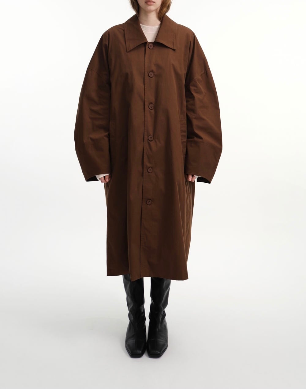 • 大きなドロップショルダーと湾曲した袖が特徴的です