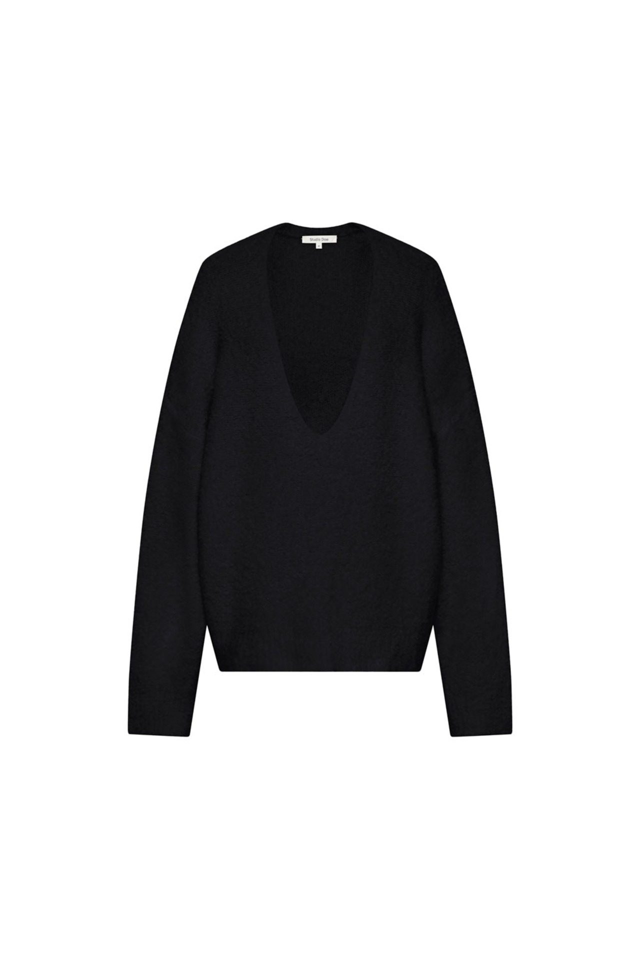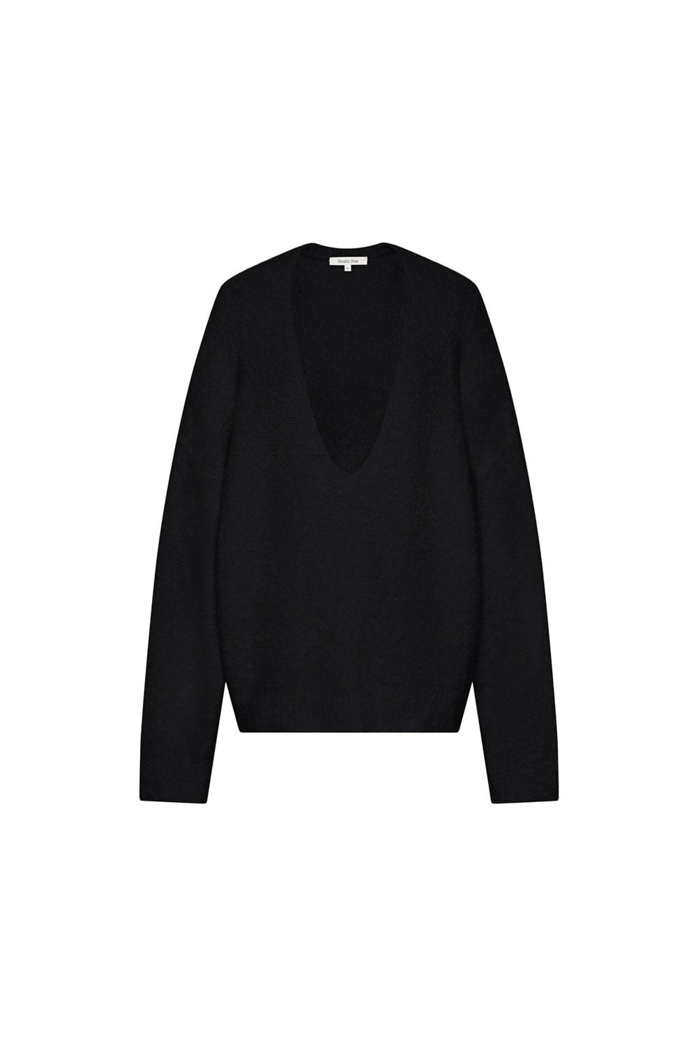 ・肩とネックラインを長くし、首の後ろにスタンドアップカラーをあしらって、お世辞のシルエットに仕上げます。