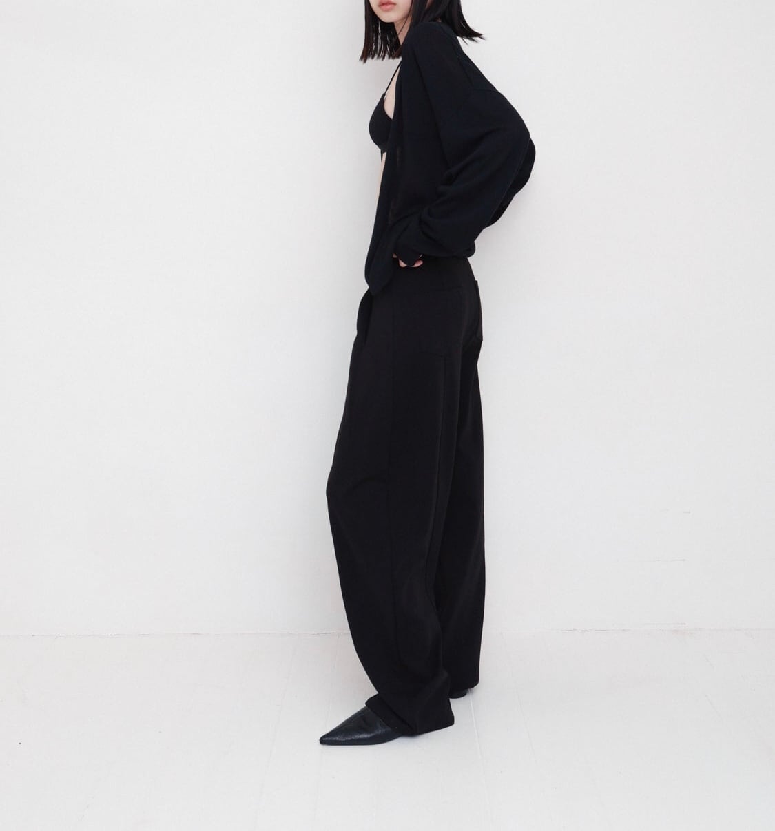• 繭のようなシルエットを実現するプリーツデザイン