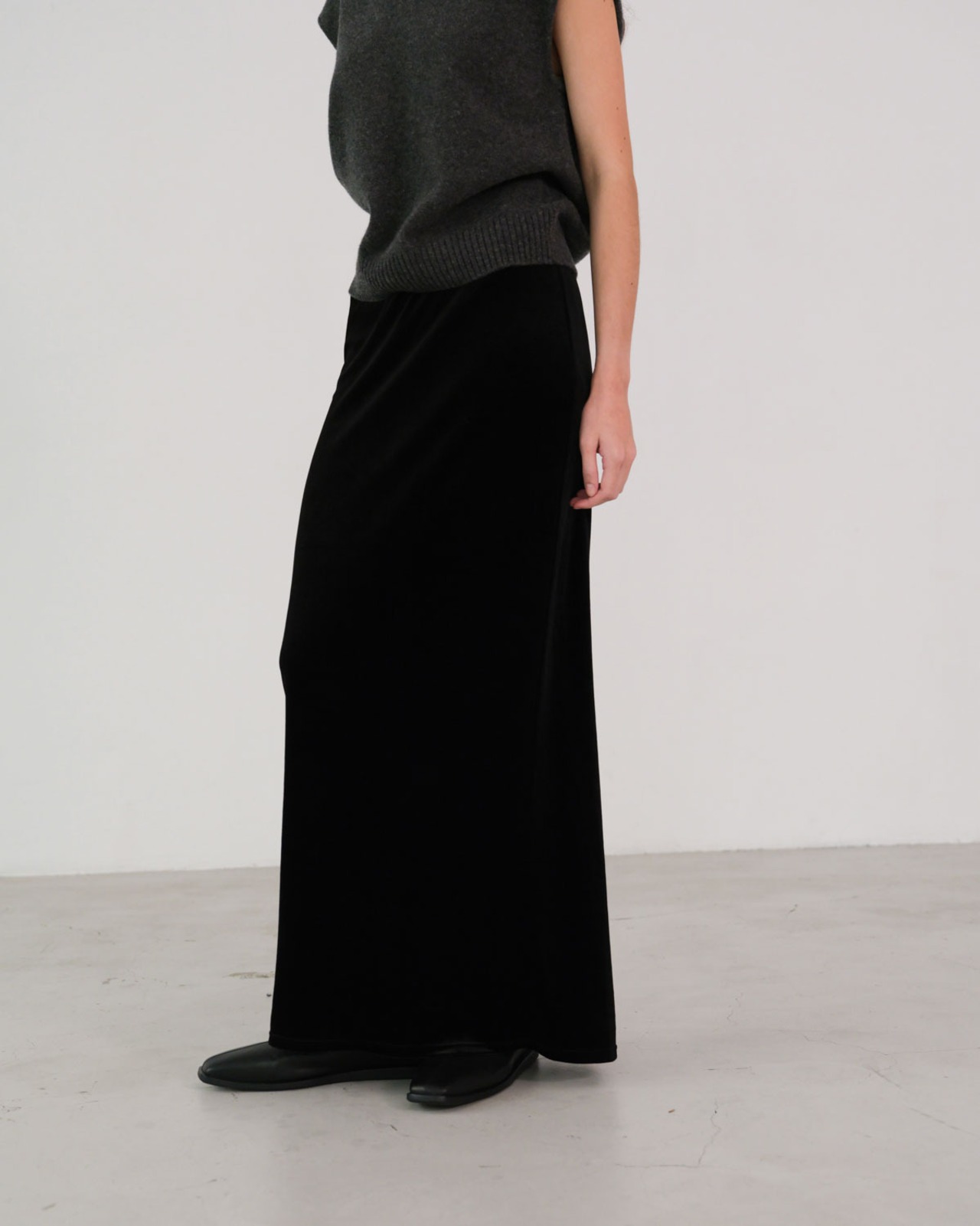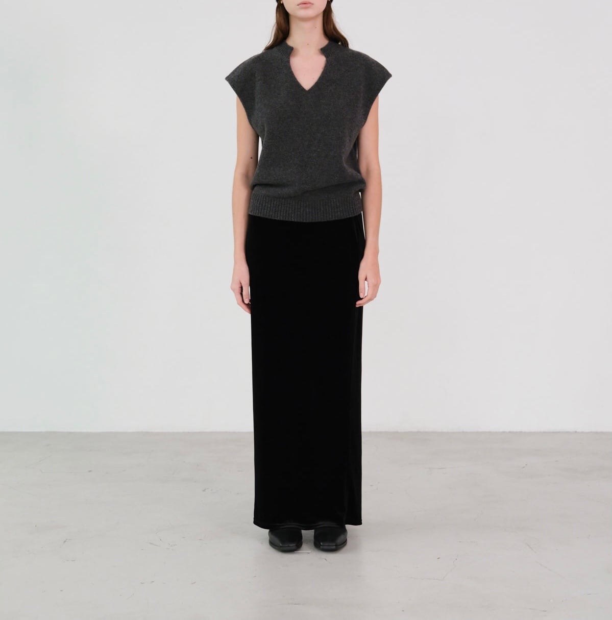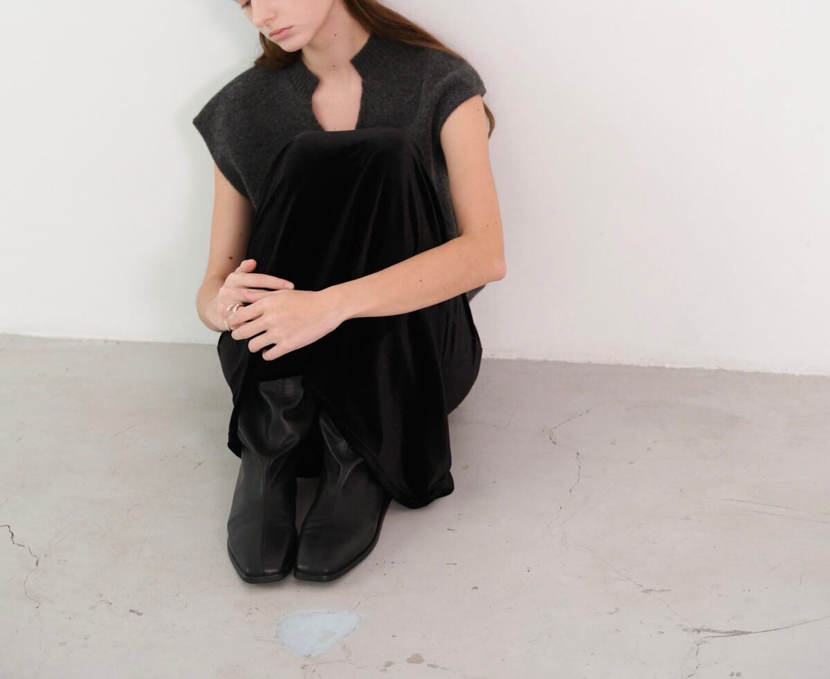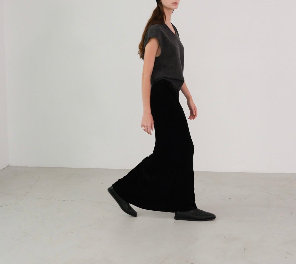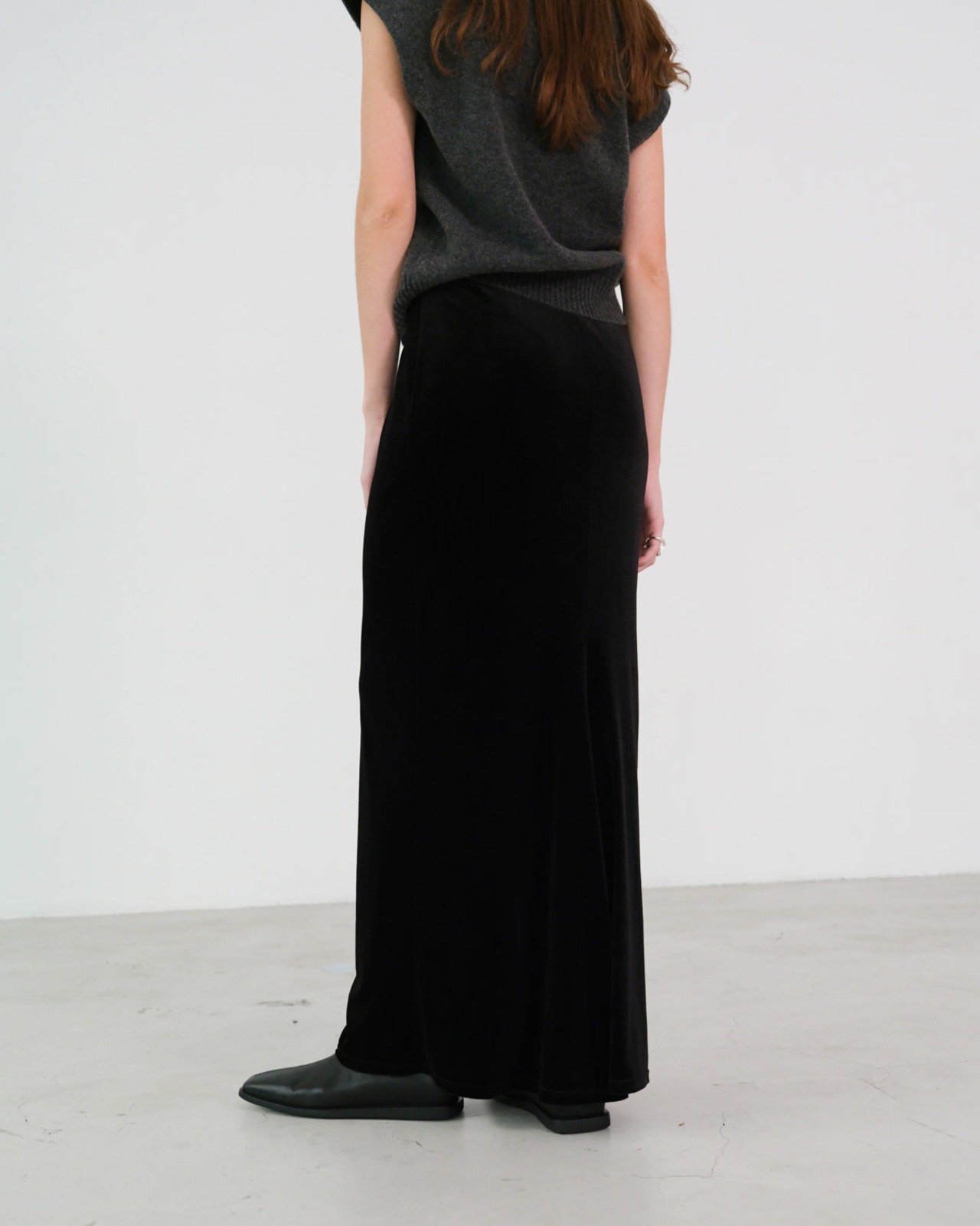 ・光沢感のあるベロアスカートは, 背面はフィッシュテール型にカットされており,動きやすいデザイン