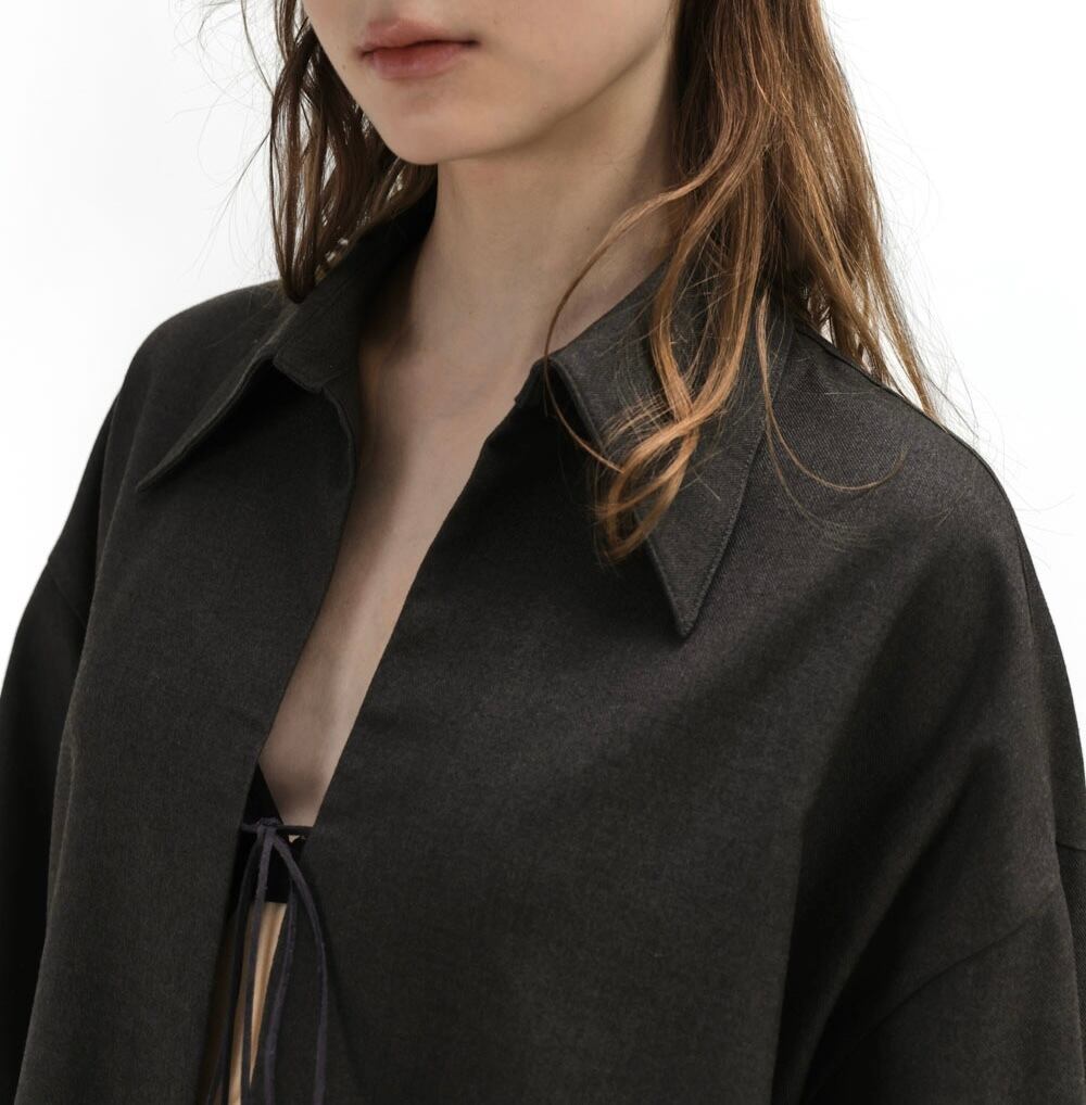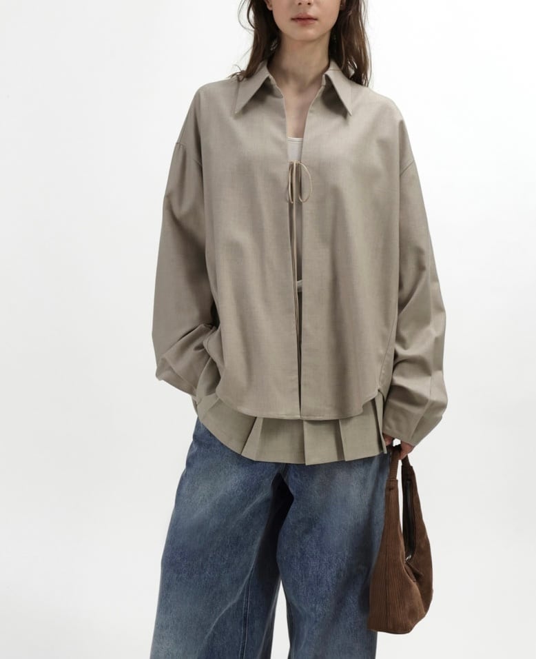 ・スエードコードがついており、前で結ぶことができます。ボタンなし