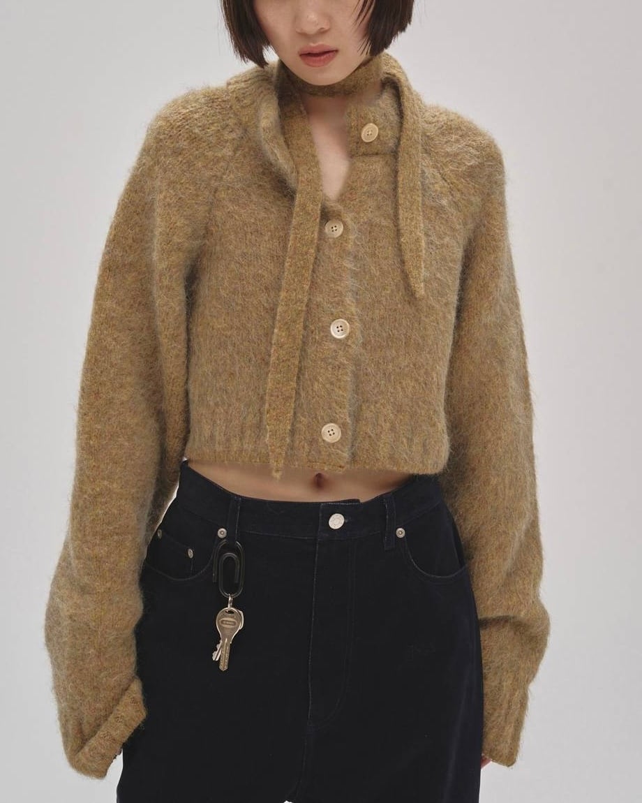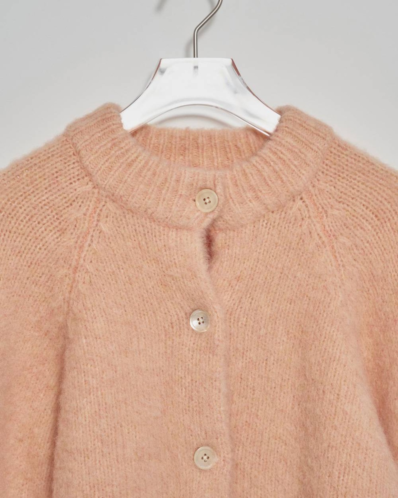 上質なモヘア混糸で編み上げたニットカーディガン。起毛感のあるブラッシュド加工を施すことで、ふんわりとした質感と暖かな肌ざわりに仕上げました。コンパクトなサイズ感で、スタイリングにすっきりと馴染みながらも、鮮やかなカラー展開で存在感をプラス。前後どちらでも着用できる2WAY仕様で、気分やコーディネートに合わせてアレンジが楽しめる一枚です。