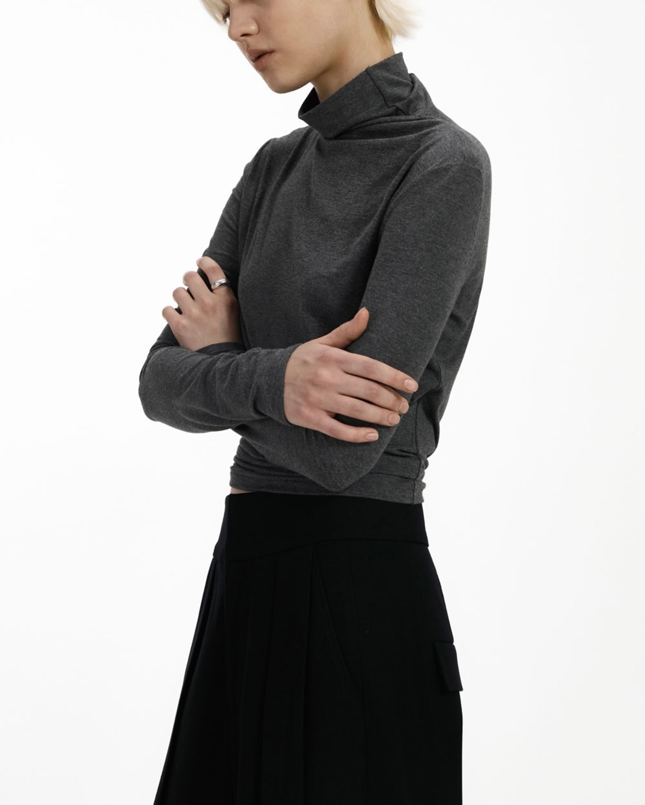 • 繋ぎ目の少ないハイネックデザインで、首元は少しゆったり