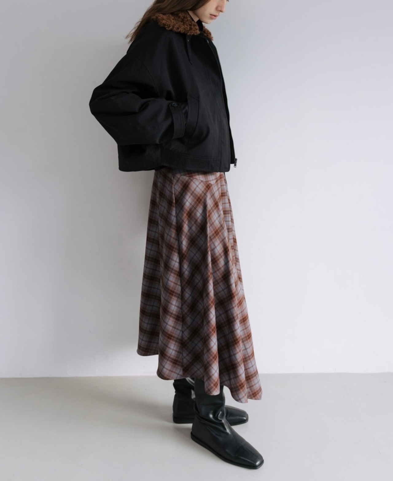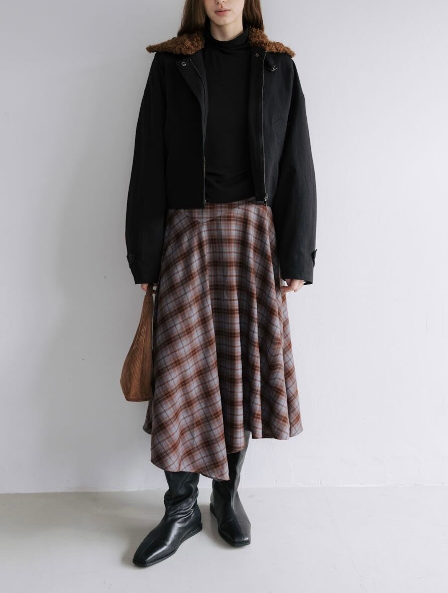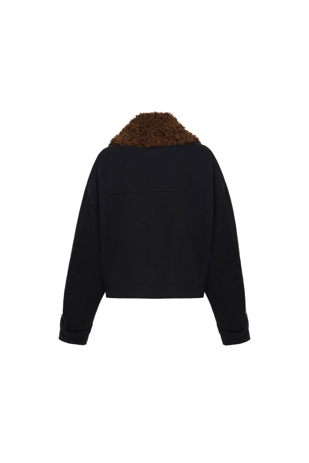 • ポケットあり。カールしたファーの襟がポイント。