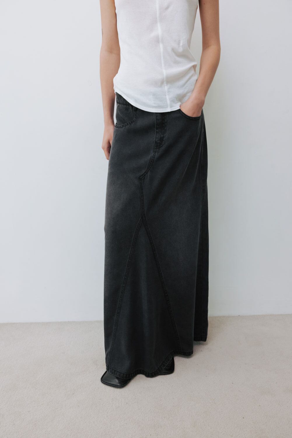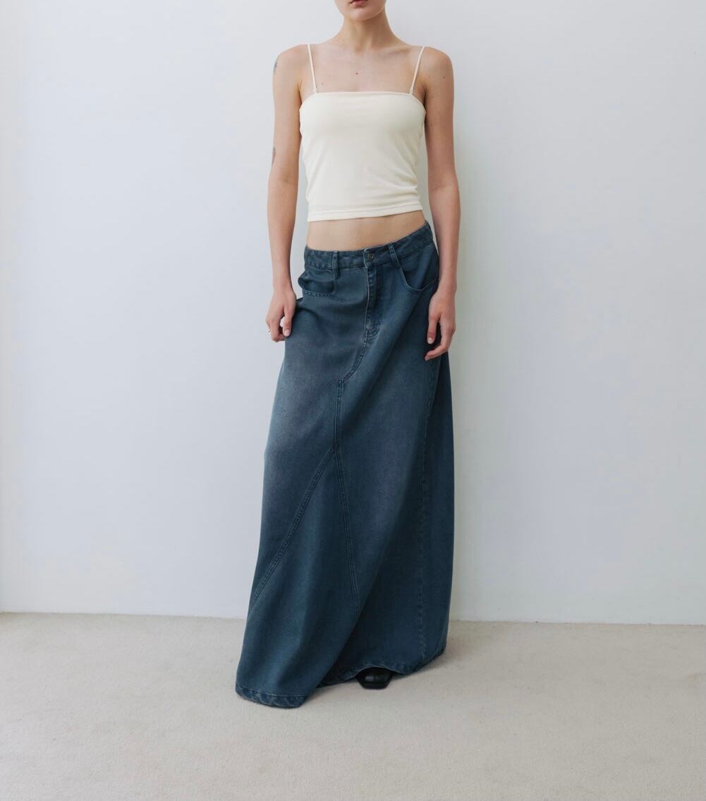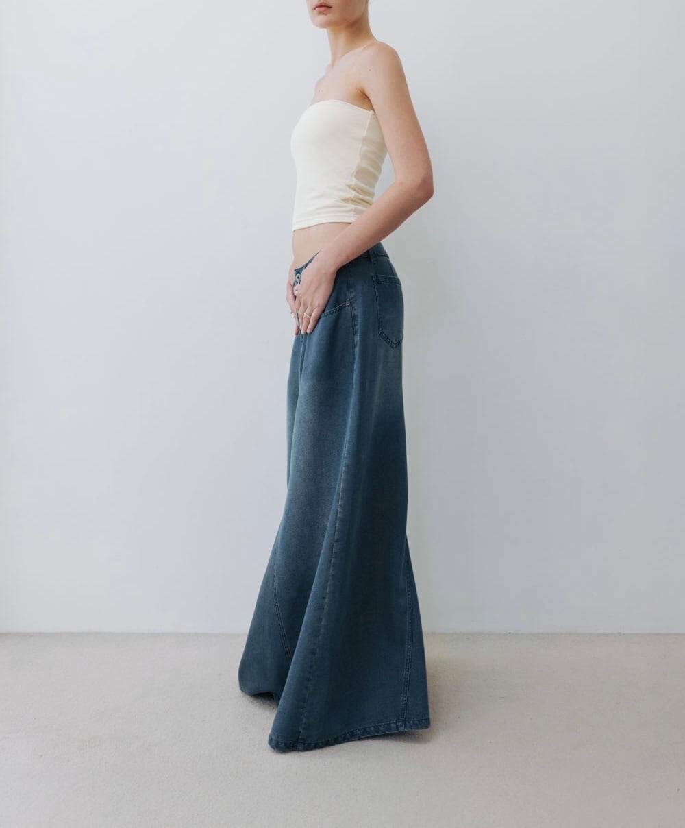 ・柔らかくキラキラとしたテンセルデニム生地は、歩くたびにドレープを描きます。