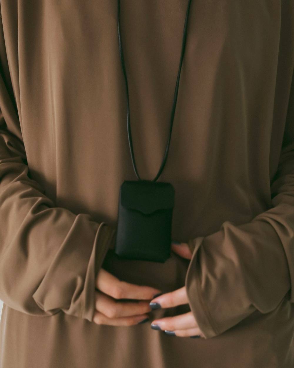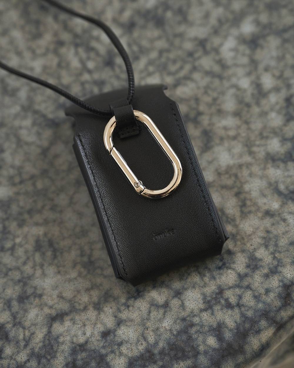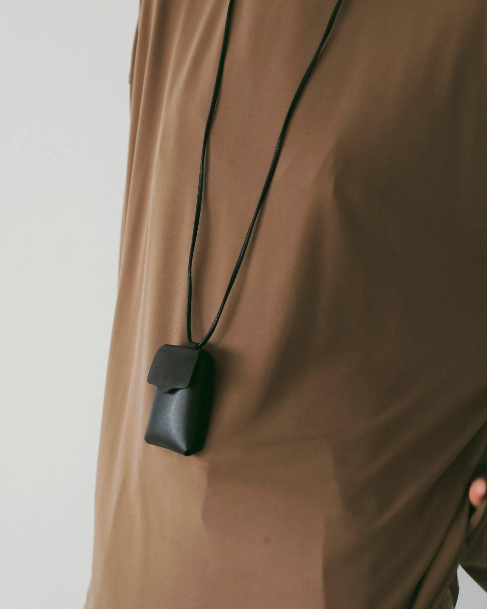 コンパクトなサイズ感でネックレス感覚でつけていただけるレザーケース。牛革を使用しています。首にかけていただいたり、付属のカラビナでバッグやボトムのベルトループにも付けていただけます。小さめのリップや小銭を入れたり、ちょっとした小物を入れられる、AirPodsがぴったり入るくらいの小ぶりなサイズ。スタイリングに馴染みながら、程良いアクセントになり、こなれた印象を添えてくれます。
