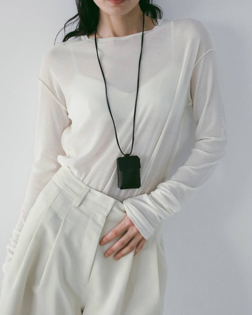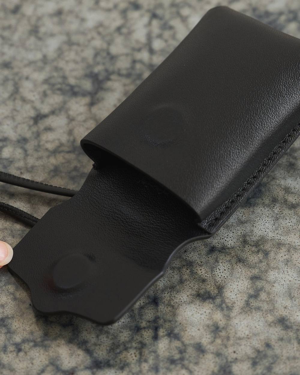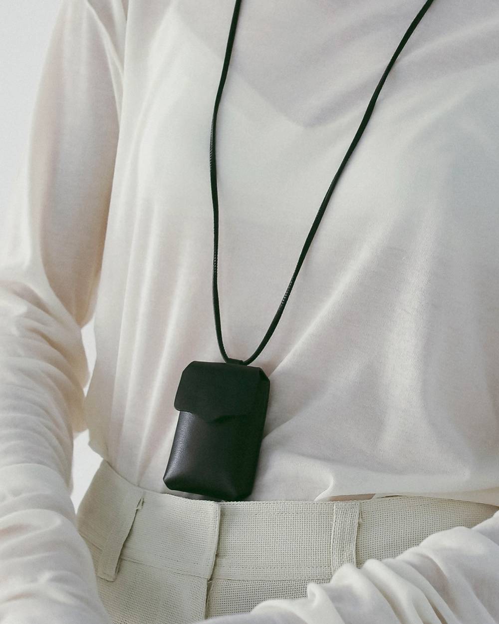 コンパクトなサイズ感でネックレス感覚でつけていただけるレザーケース。牛革を使用しています。首にかけていただいたり、付属のカラビナでバッグやボトムのベルトループにも付けていただけます。小さめのリップや小銭を入れたり、ちょっとした小物を入れられる、AirPodsがぴったり入るくらいの小ぶりなサイズ。スタイリングに馴染みながら、程良いアクセントになり、こなれた印象を添えてくれます。