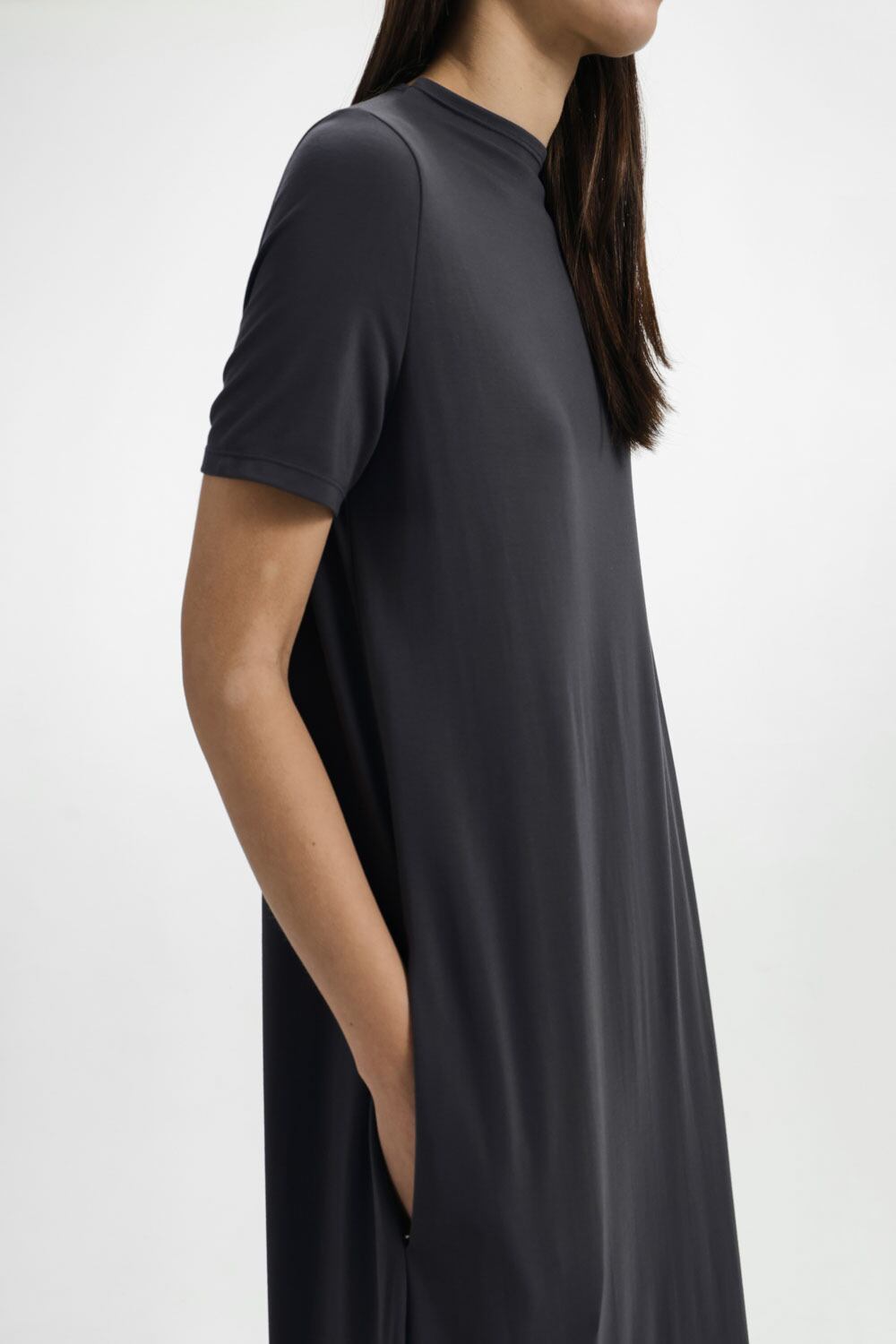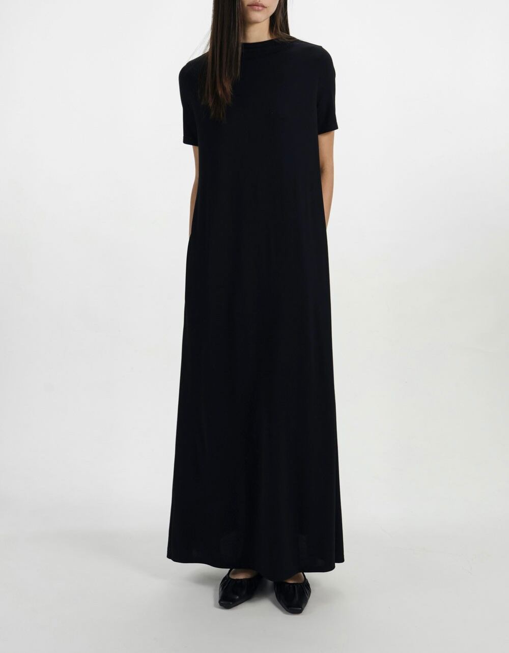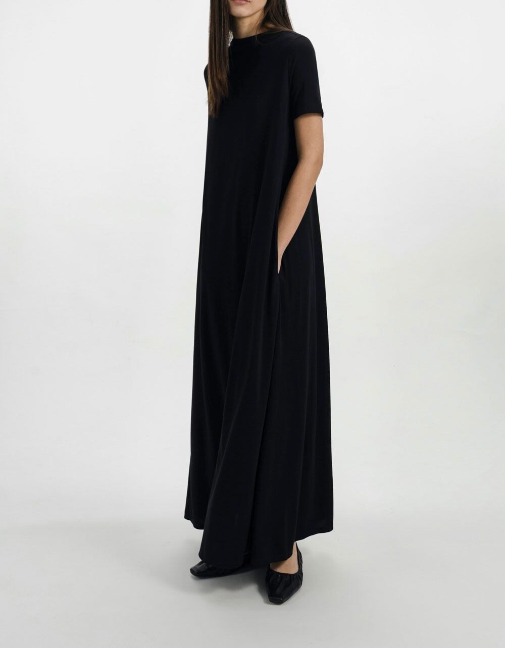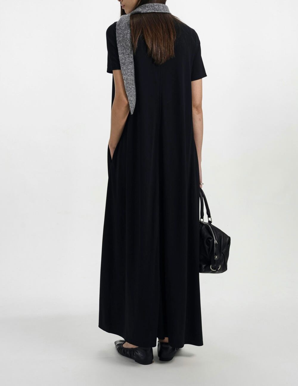 •ドレープ感のある生地によりスカートが自然と広がるシルエット
