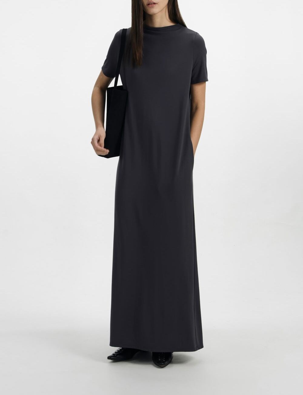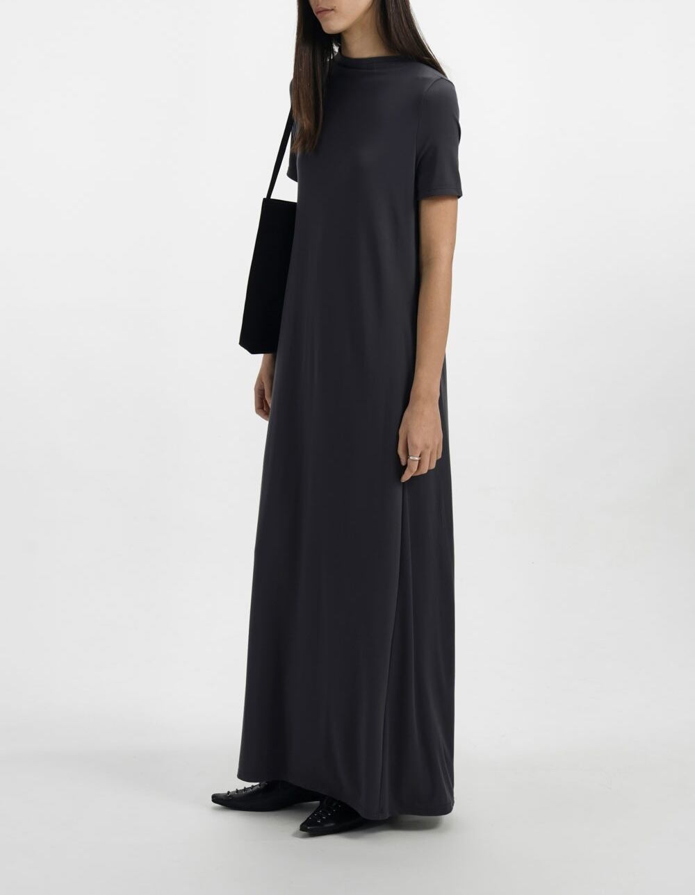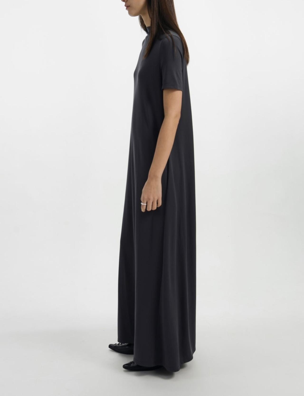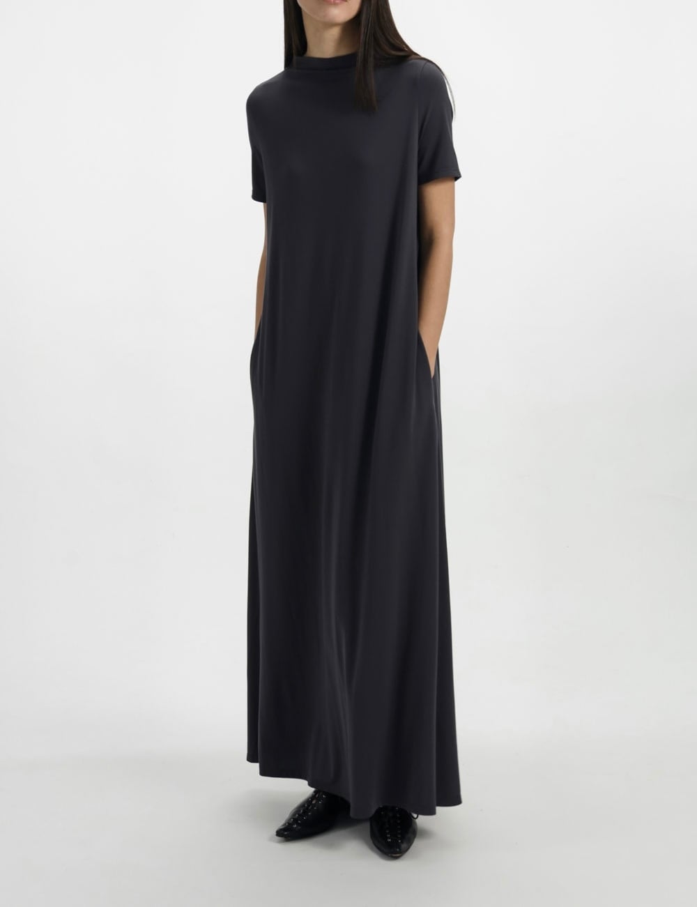 •ドレープ感のある生地によりスカートが自然と広がるシルエット