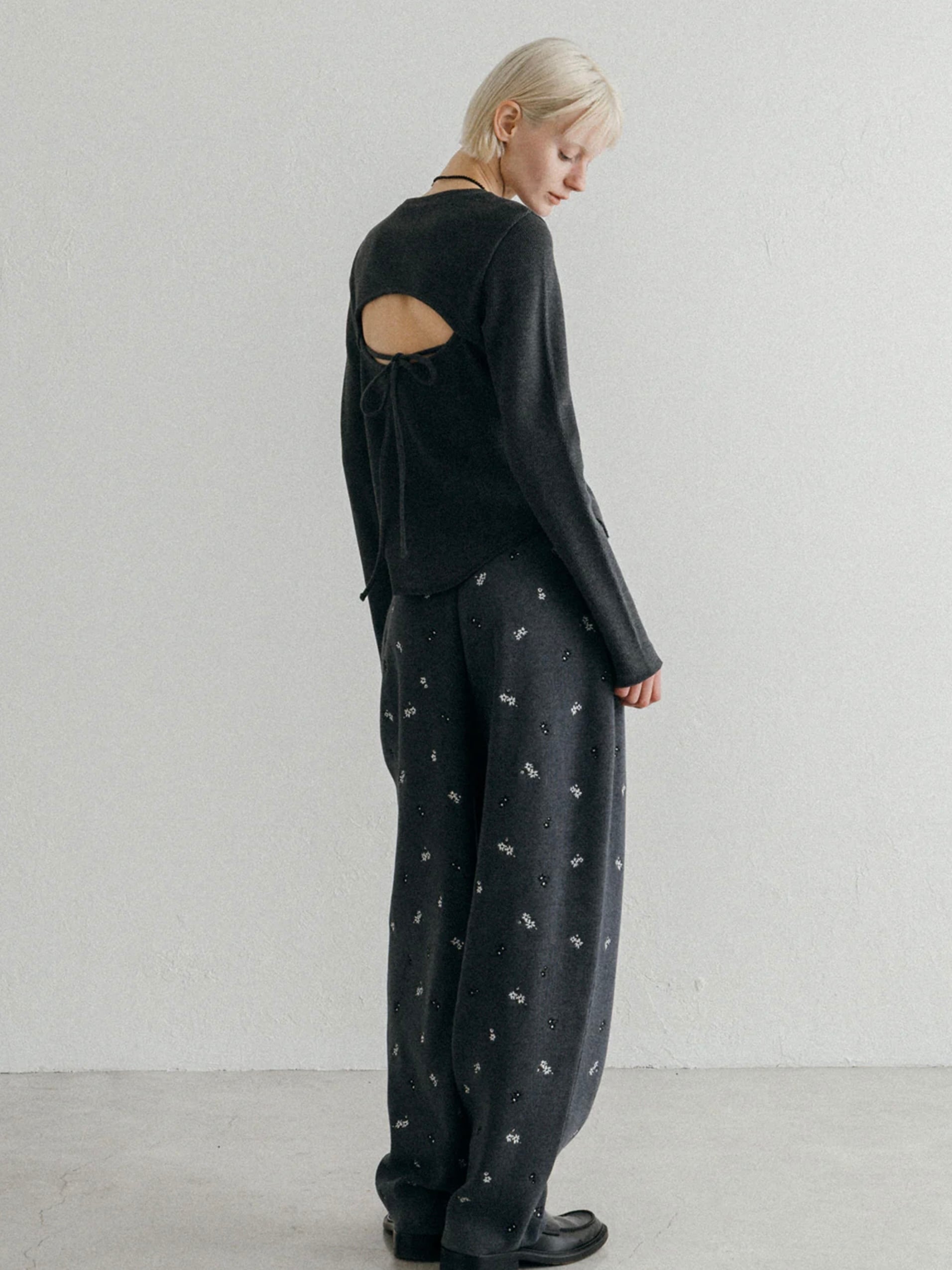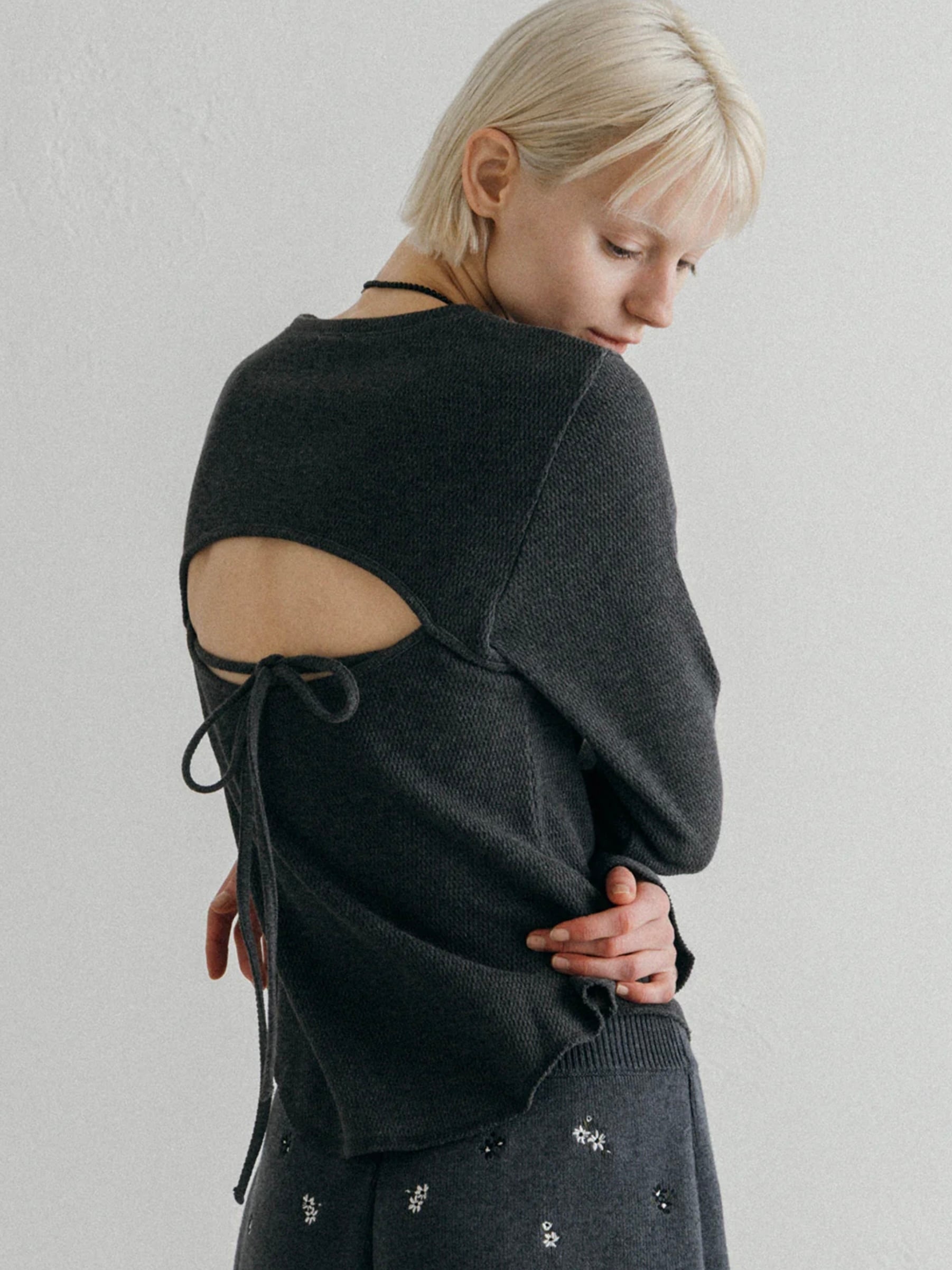 ラフな表情のワッフル素材に、カッティングで生まれる抜け感を掛け合わせることで、メンズライクなアイテムにさりげない色気を添えました。