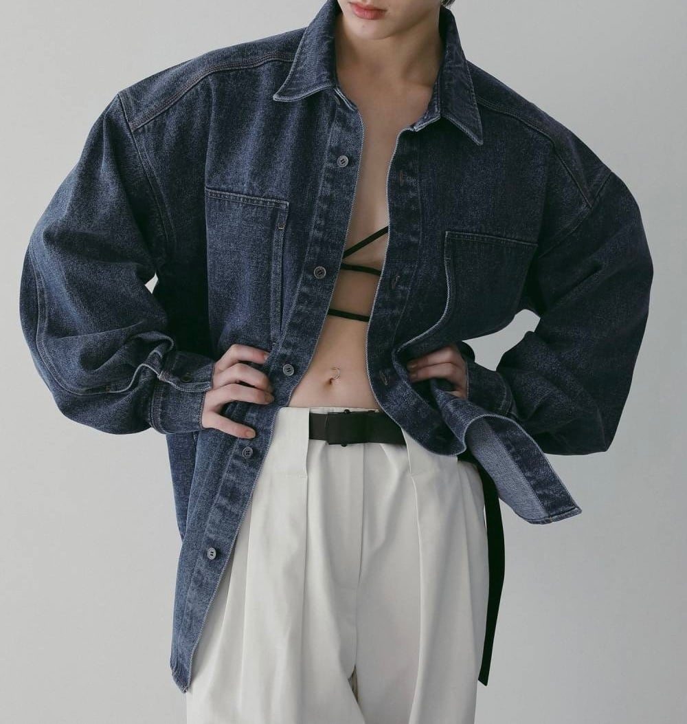 程よい厚みのデニム素材を使用した、オーバーシャツ。シャツとしてはもちろん、羽織りとしても活躍する一枚です。春の装いに映える、爽やかなブルーとホワイトの2色展開。胸元の大きなポケットやさりげないステッチが、カジュアルな中に程よい抜けと品の良さを添えます。着るほどに体に馴染む、デニムならではの風合いも楽しめる一着です。