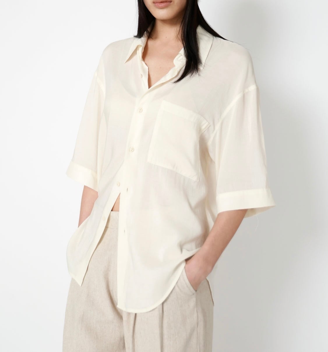 • ややゆったりとしたシルエットで、ドレープ感のある生地と組み合わせ、滑らかでスタイルを引き立てます