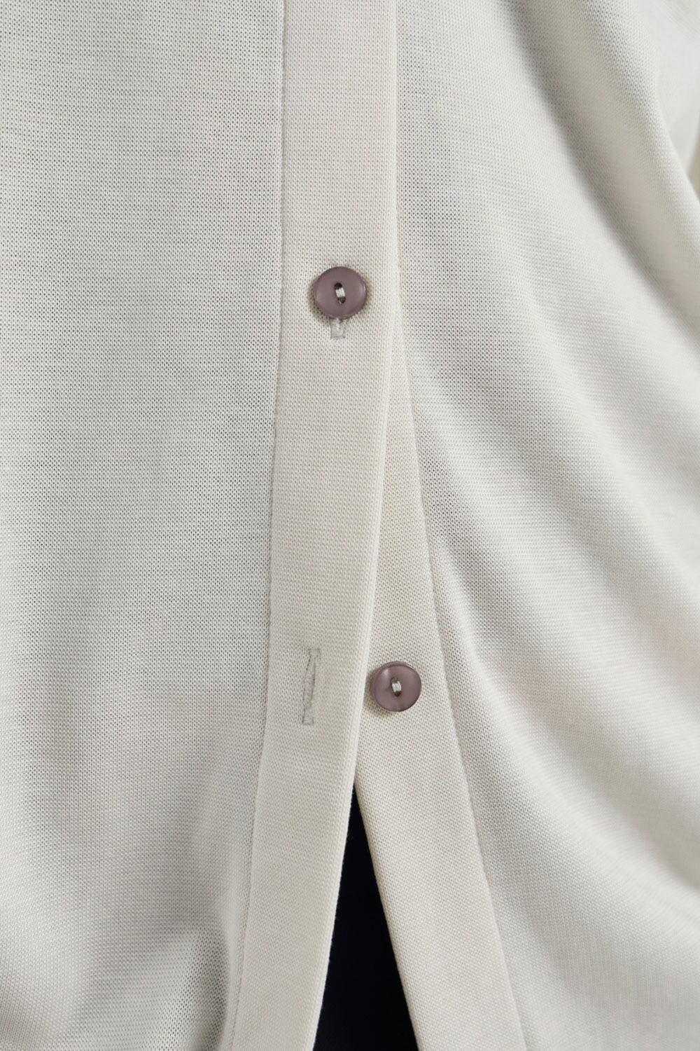 光沢のあるボタンが、シンプルなデザインにさりげないアクセントをプラス。