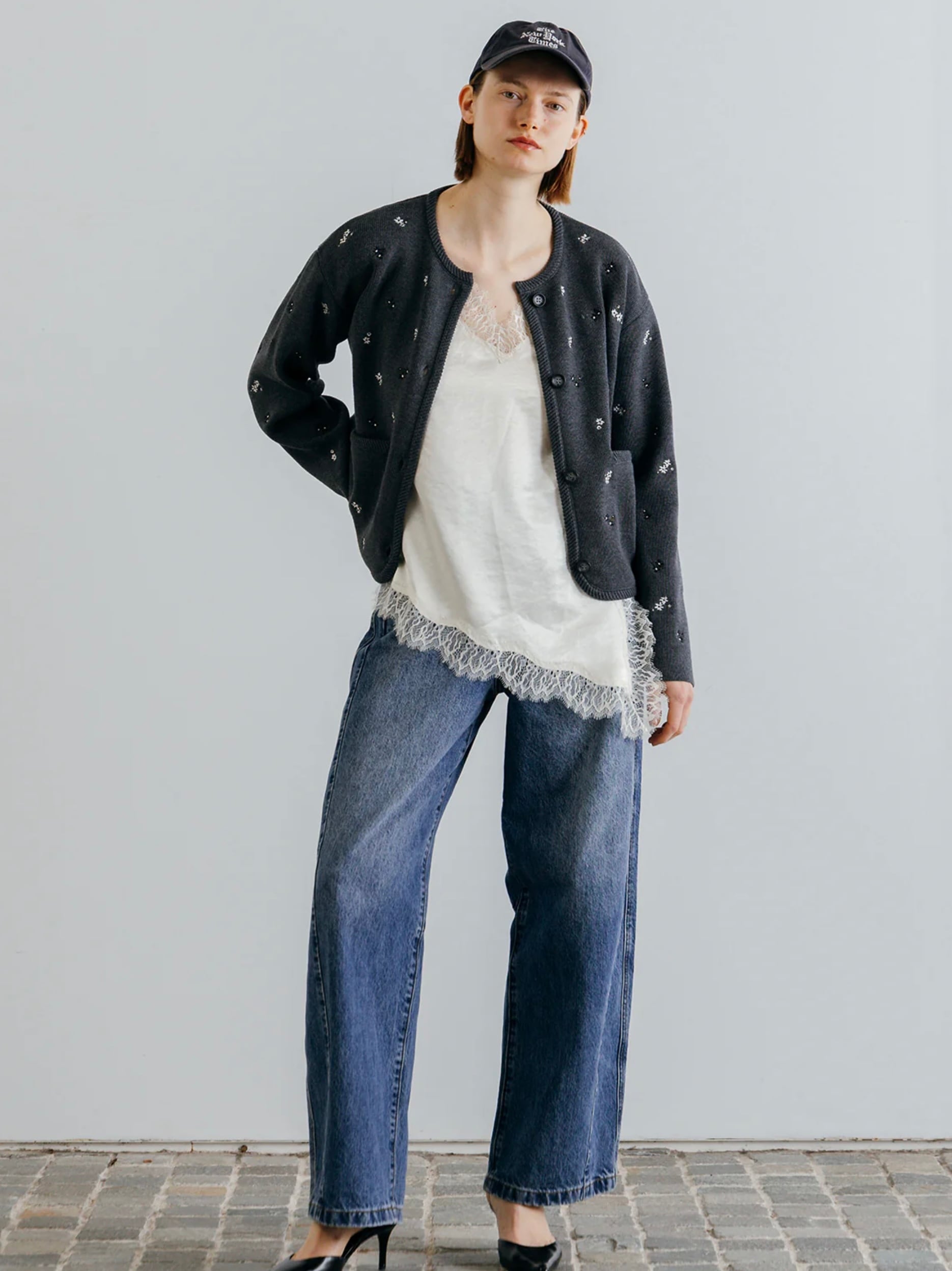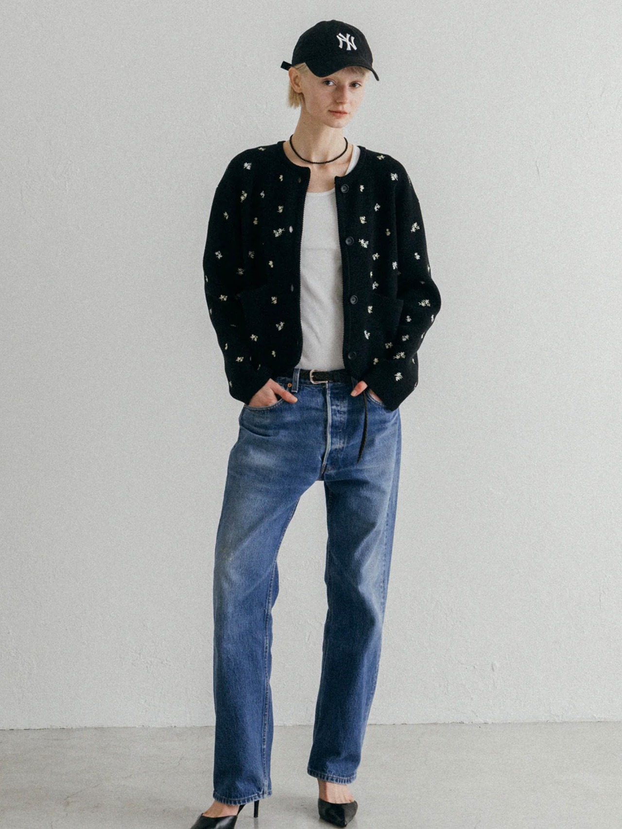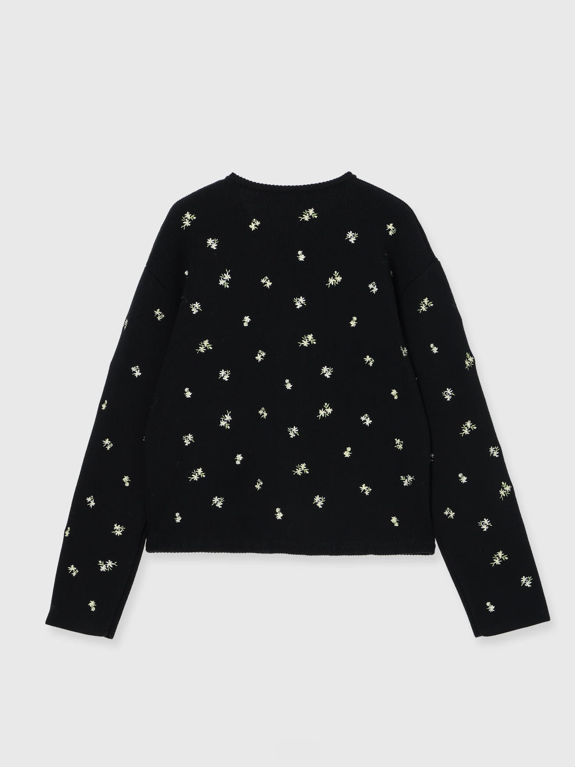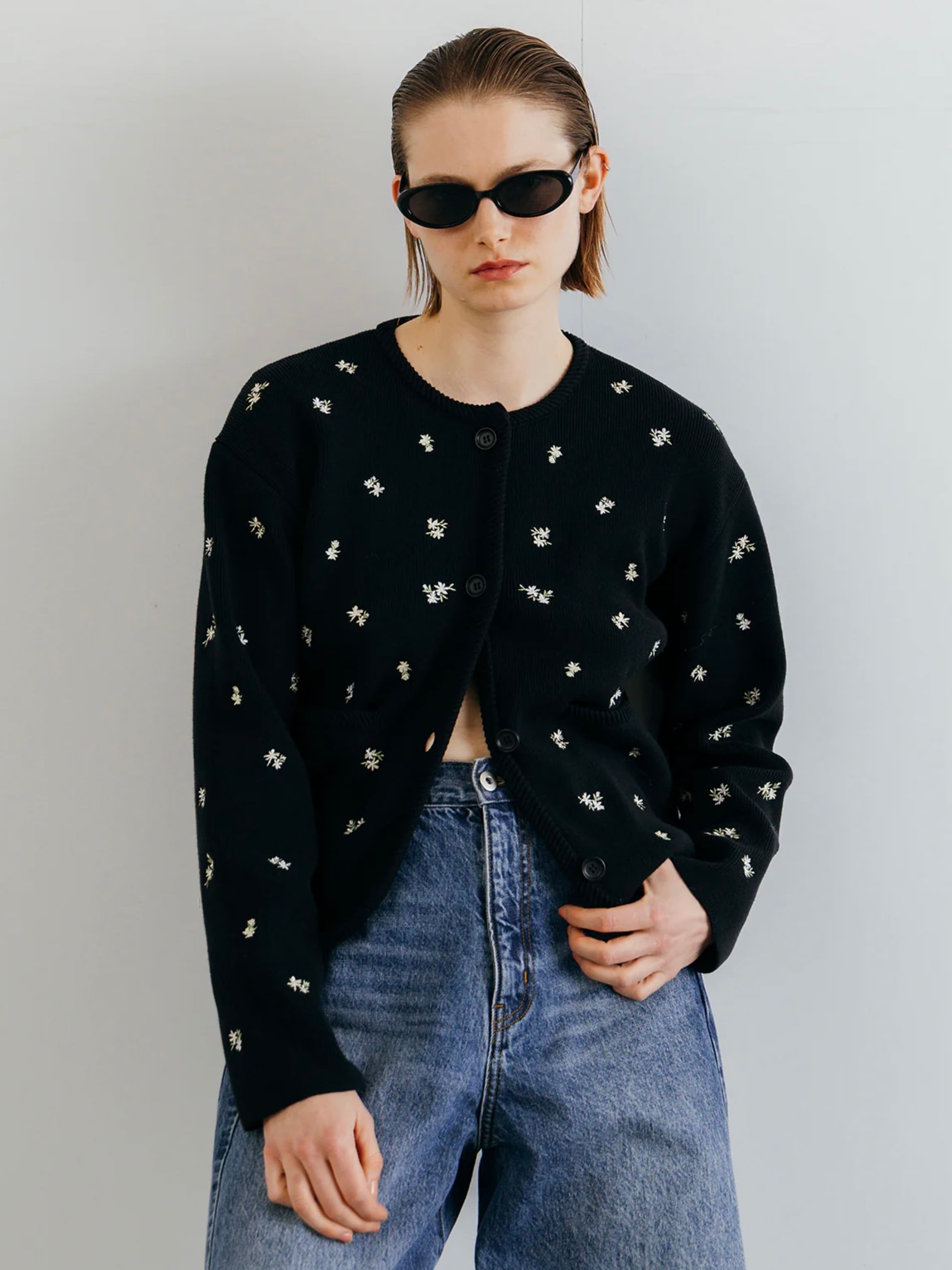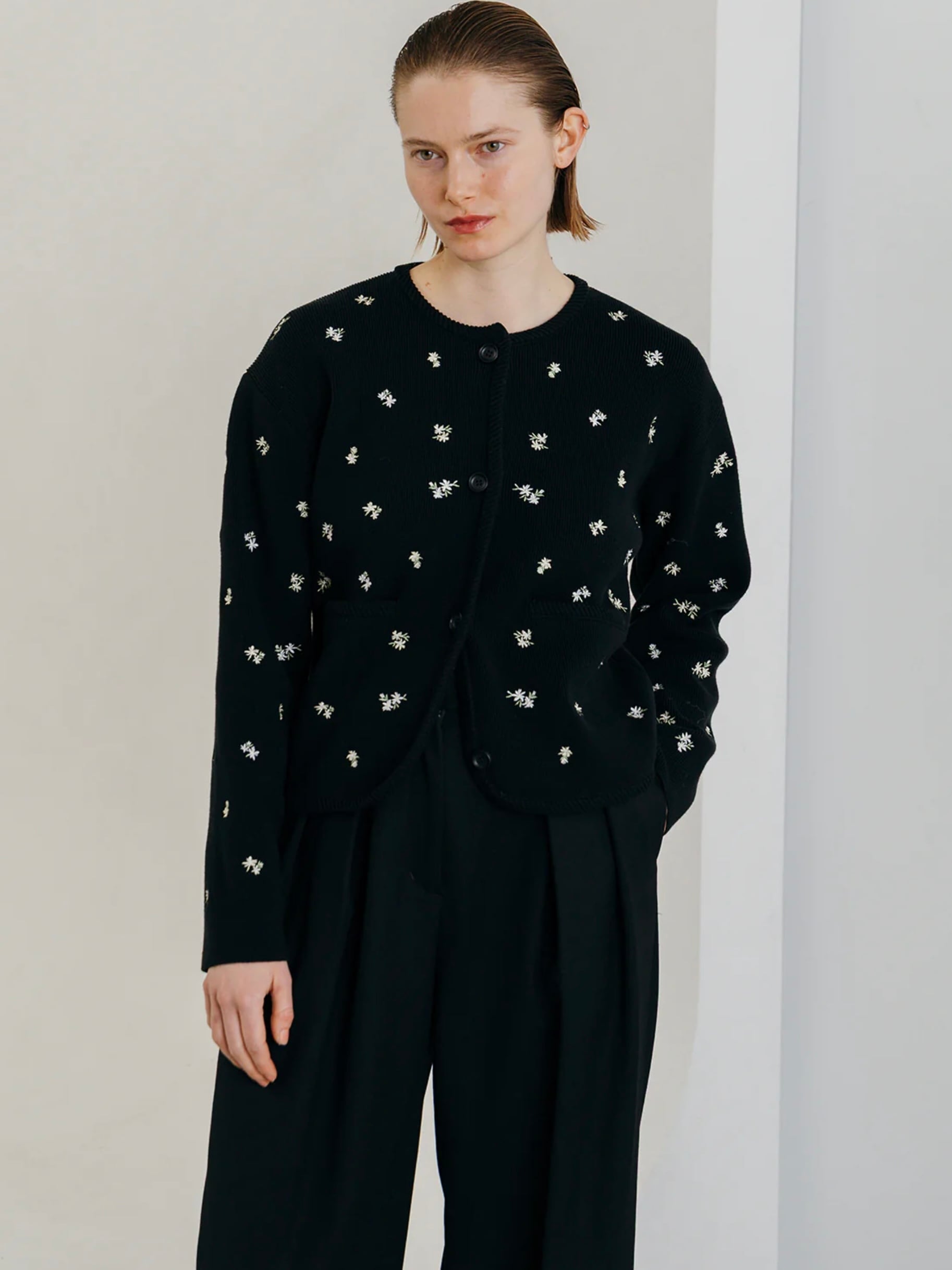 アーティスティックな小花の刺繍を散りばめ、羽織るだけで華やぎを添える一枚です。