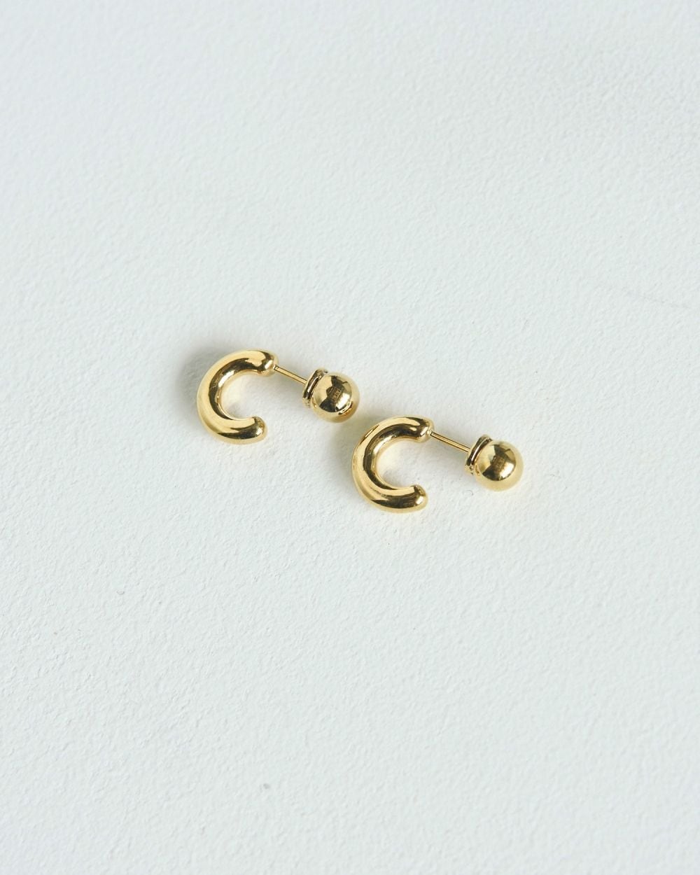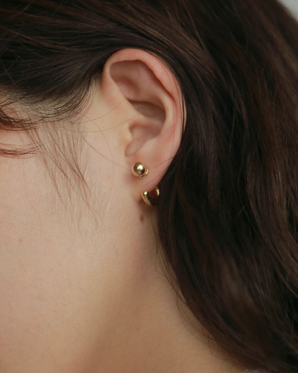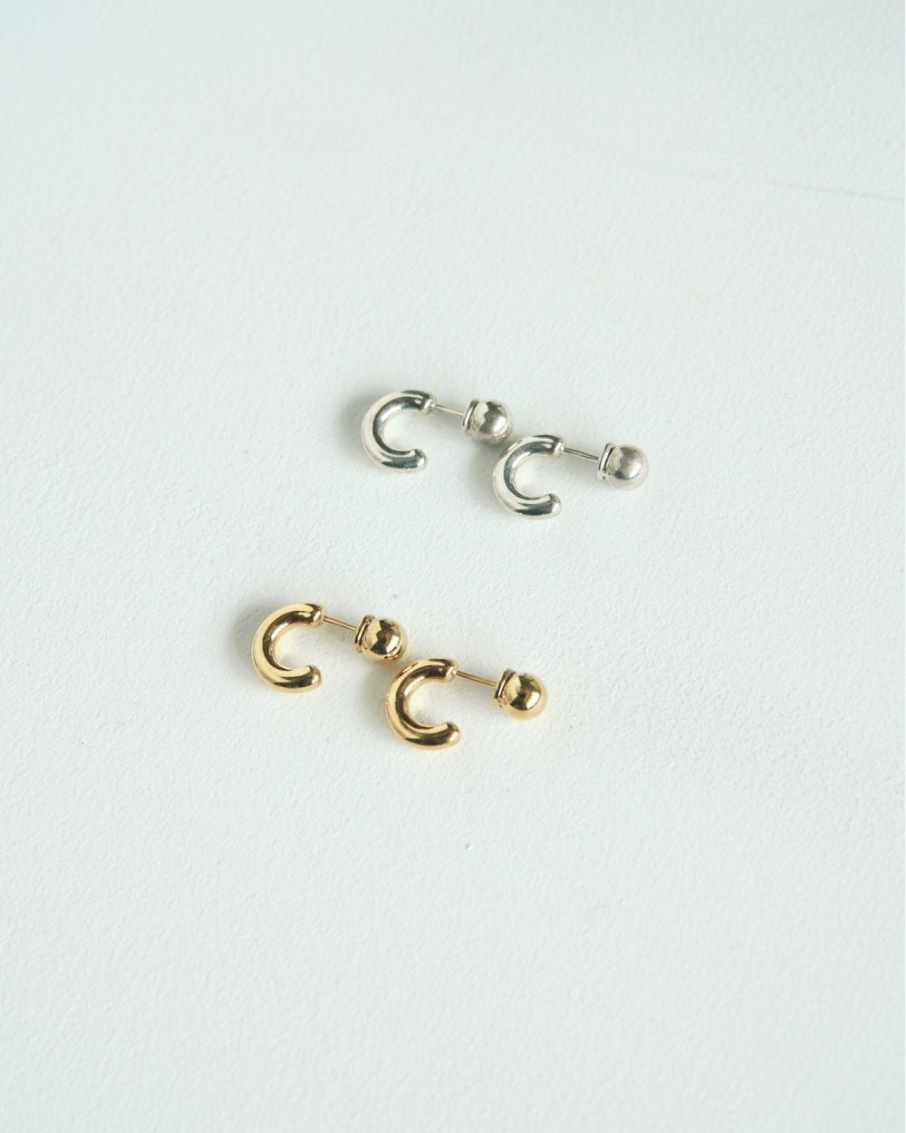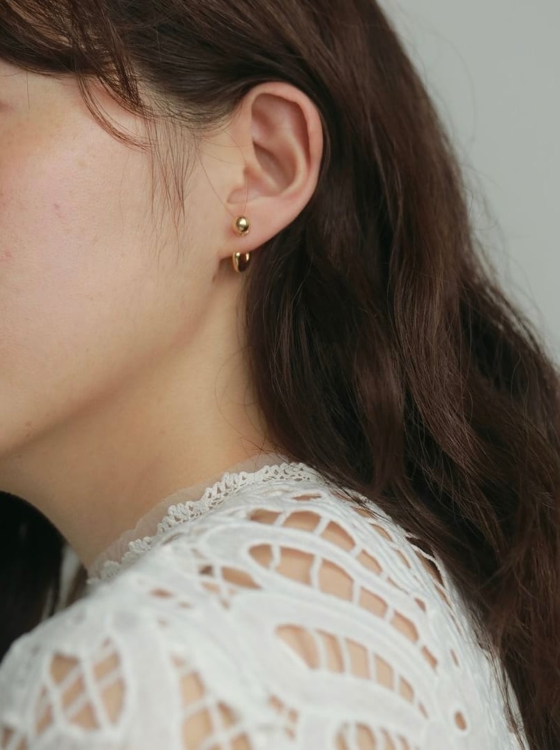 フープとボールタイプの2WAYで楽しんでいただけるミニピアス。 小ぶりでさりげなく耳元に光り、デイリーに使いやすく、スタイリングを選ばないのもポイント。