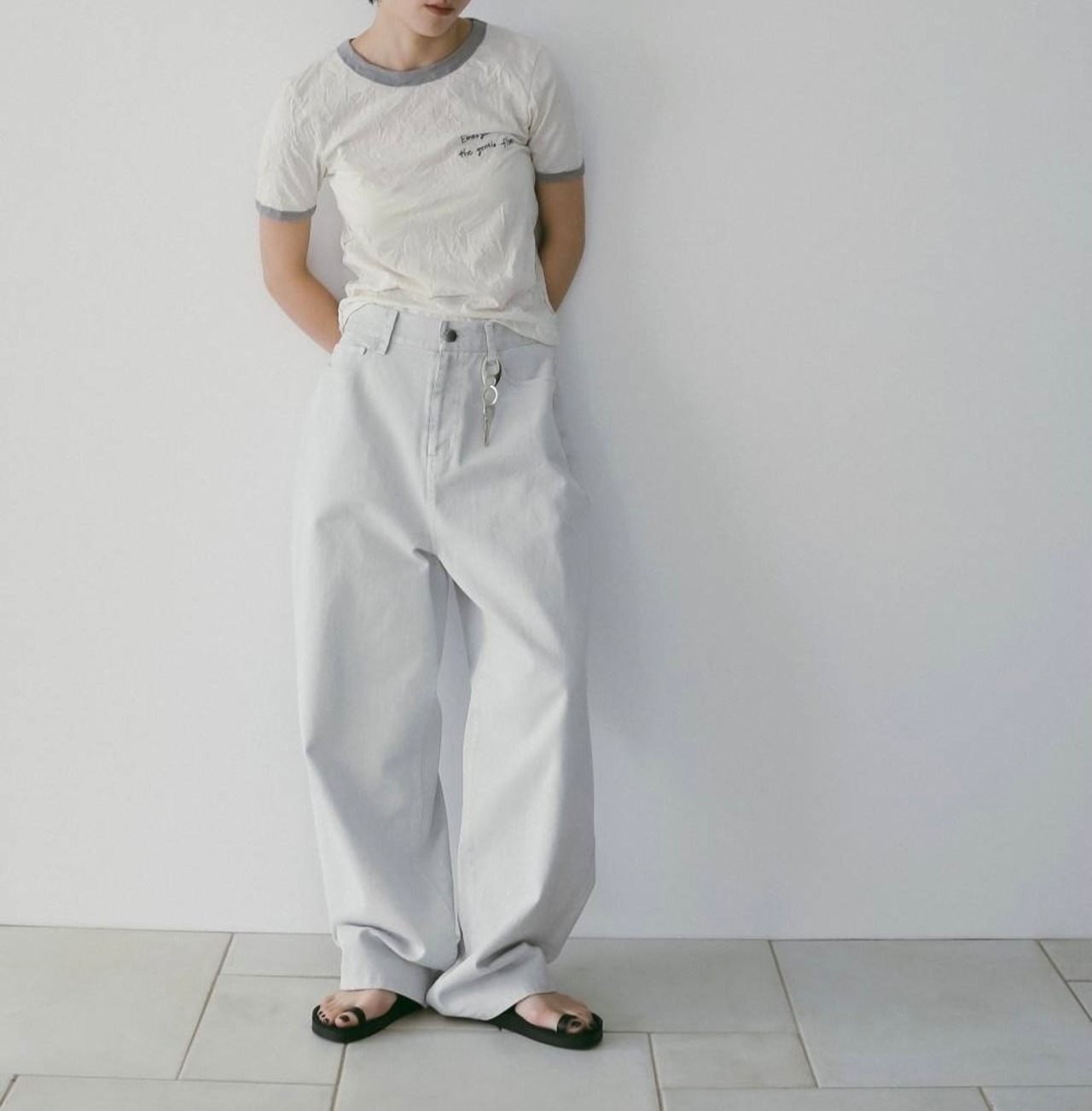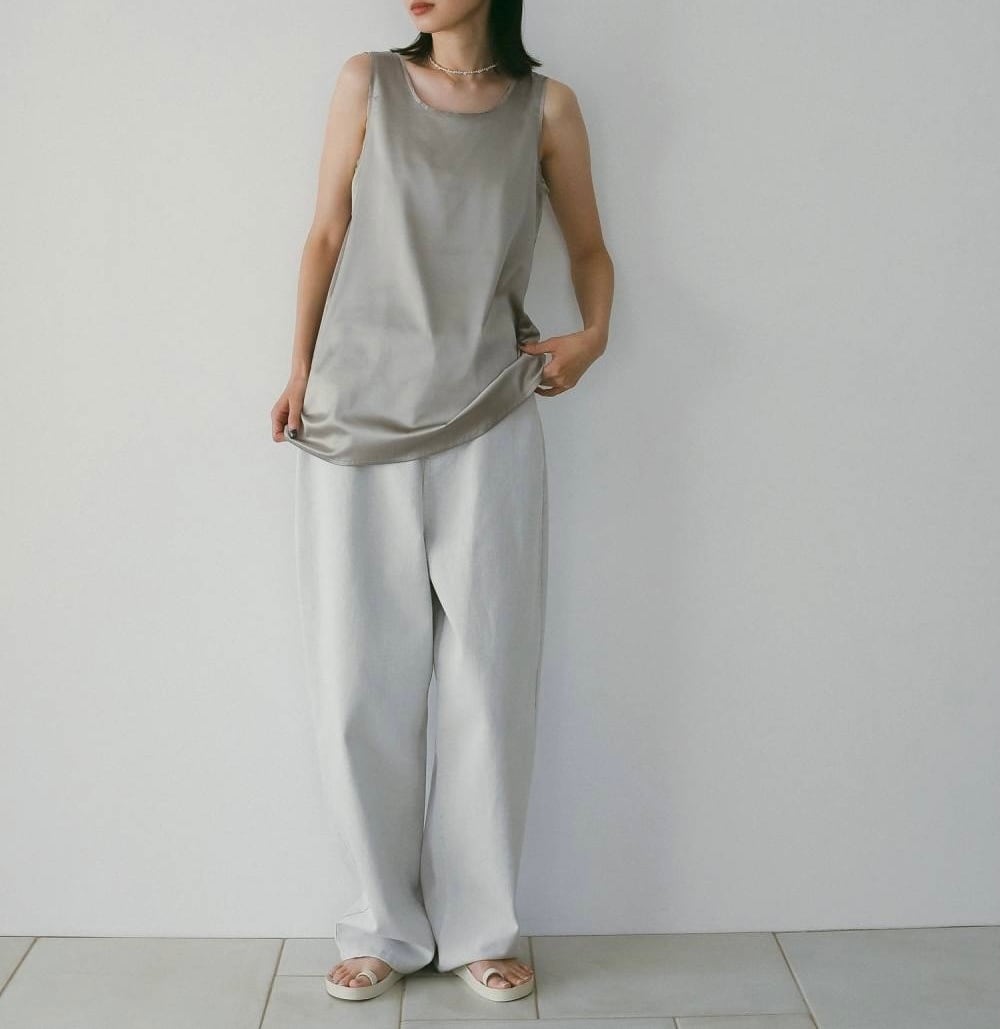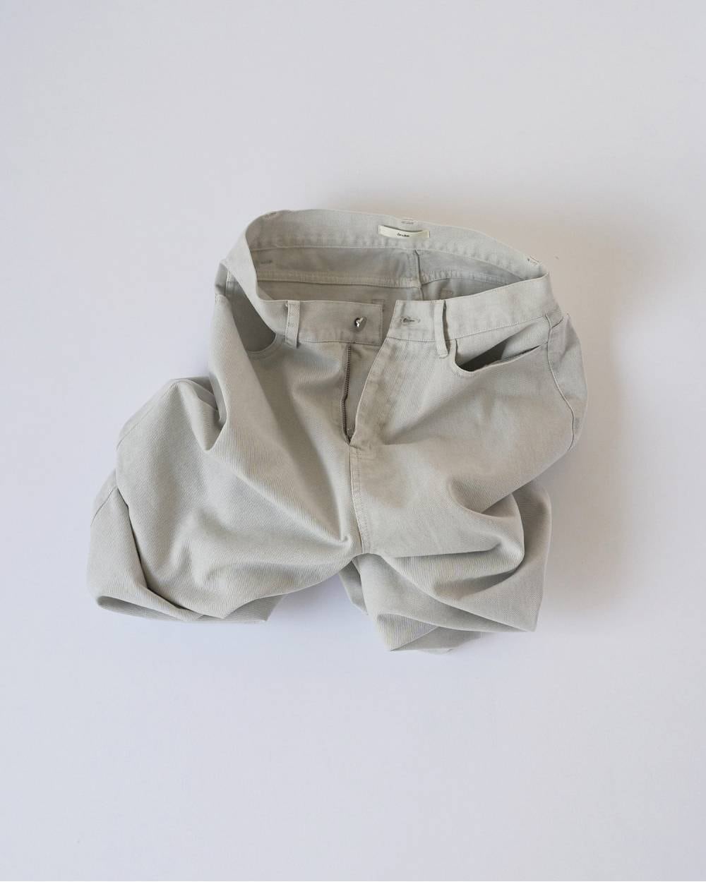 ニュアンスのあるグレーカラーで仕上げたワイドデニム。ホワイトデニムをグレーに染め、洗いをかけることで、淡く奥行きのある色味に仕上げました。やや腰で穿くウエスト設計が、自然な抜け感を演出。膝まわりに丸みを持たせたコクーンシルエットで、体から離れるワイドなラインと裾にたまるラフな表情が特徴です。軽やかなSSトップスとも好相性で、シーズンムードを引き立てます。