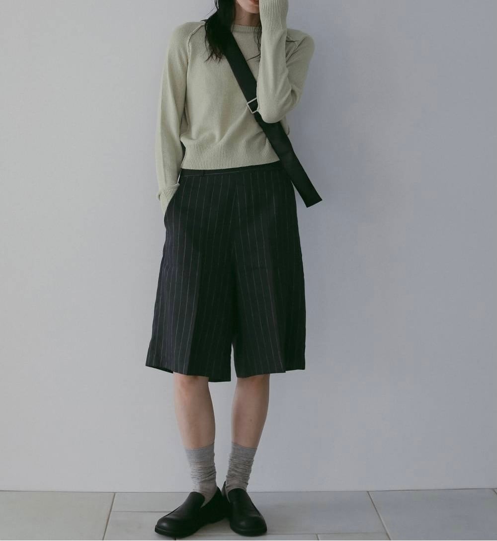 リネン素材を使用したハーフパンツ。オリジナルで織り上げた薄手の軽やかなリネン素材。裾にかけて少し広がり、体から優しく離れたシルエット。センタープレス入りで、スッキリと着ていただけます。ウエストのベルトディテールがポイント。トップスをインしたり、ショートトップスと合わせて、ベルトを見せたスタイリングも楽しんでいただきたい一本。同素材のOver Linen Jacketとセットアップで着るのもおすすめです。