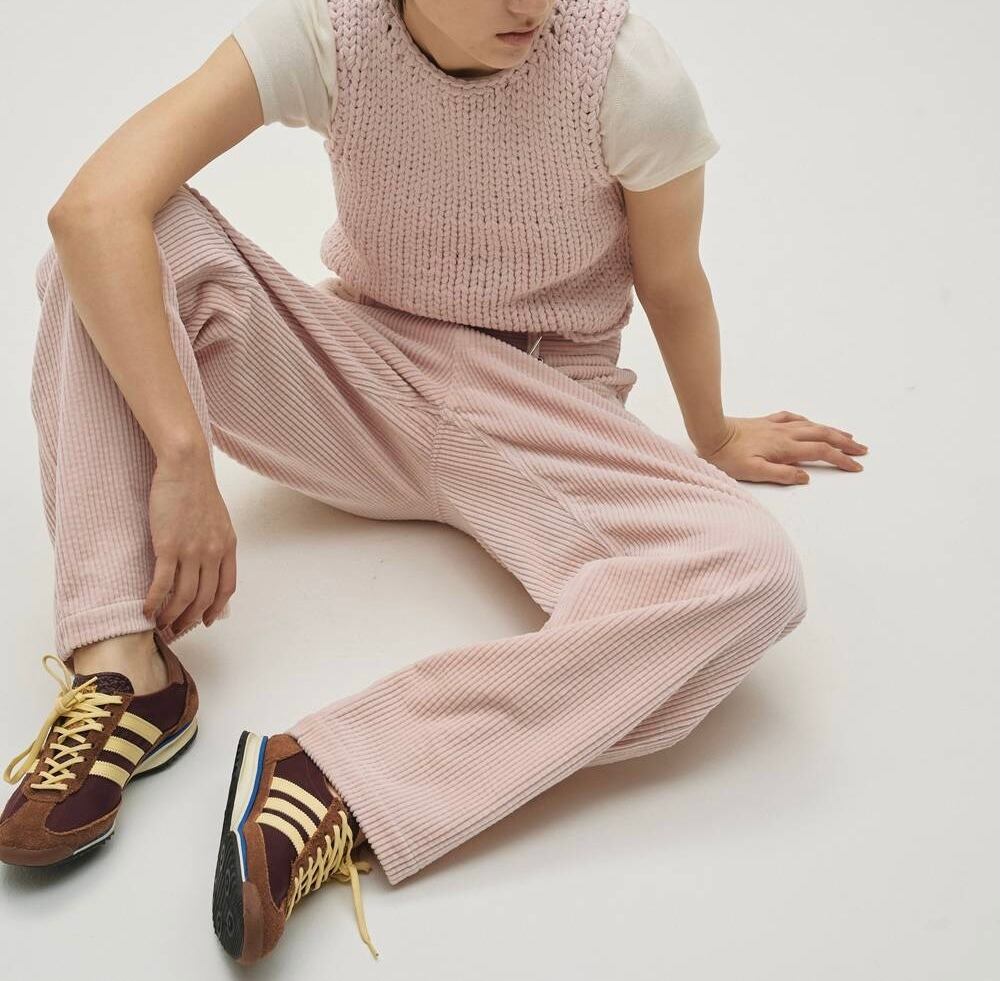 国内生地を使用した、太めの縦ラインが特徴のコーデュロイパンツ。柔らかく落ち感のある生地で、腰回りをすっきりと見せつつ、ほどよくゆとりのあるシルエットが脚をきれいに演出してくれます。シンプルなトップスを合わせるだけでもスタイリングが決まり、シーズンムードを高めてくれる一本です。