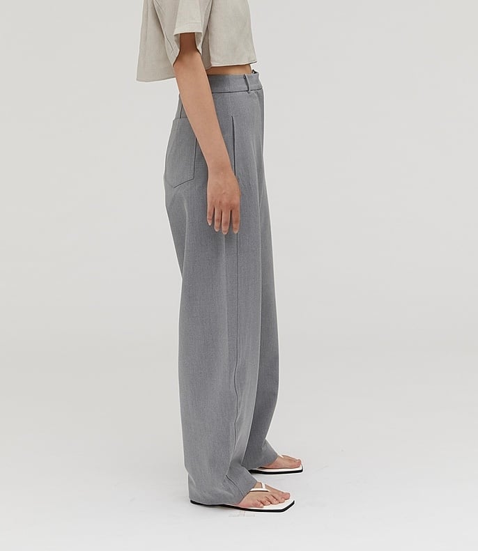 ハイウエストとカーブシルエットがポイントのパンツ