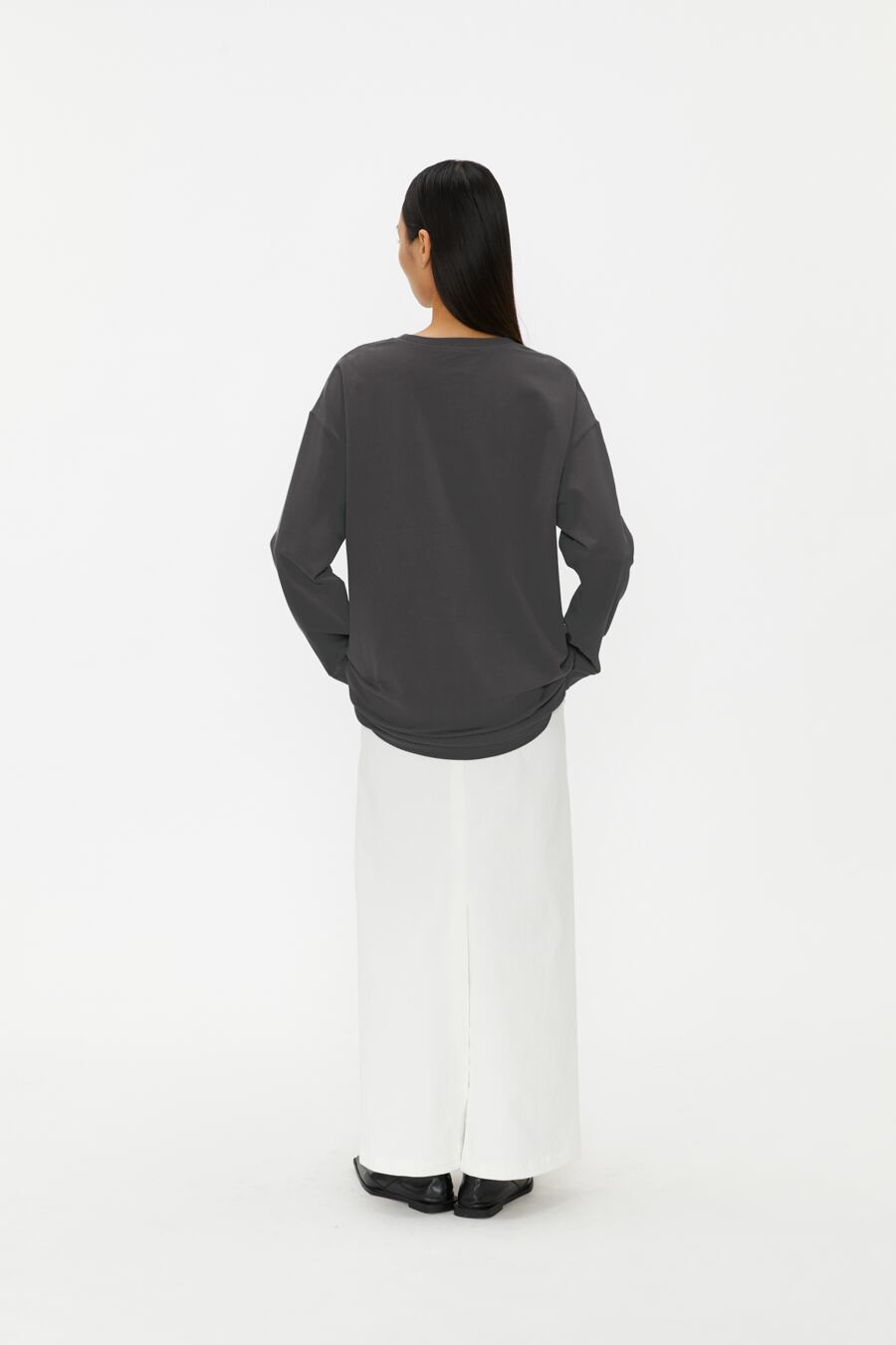 Doe/ Wide Round Neck Tee【Gray×Pink】