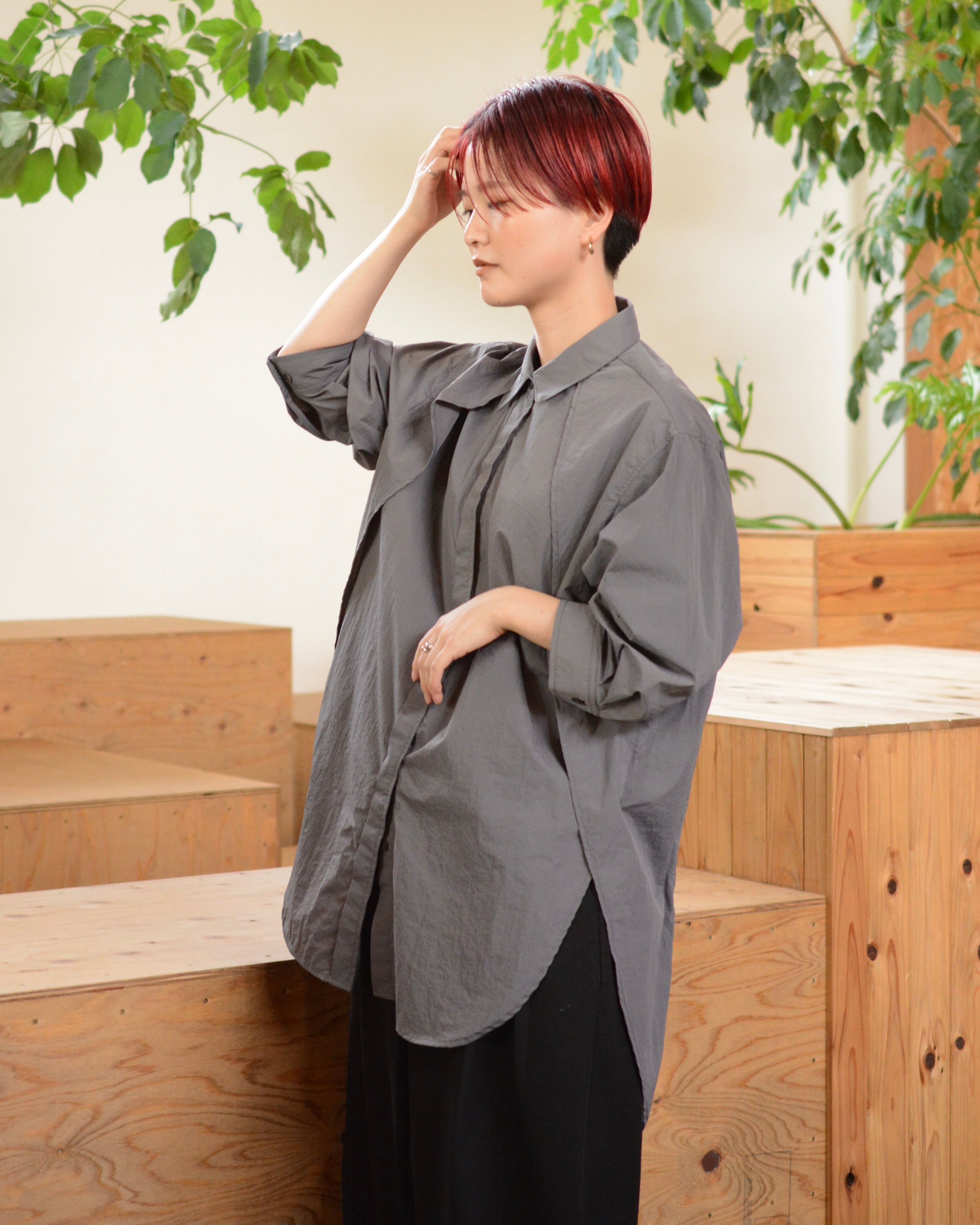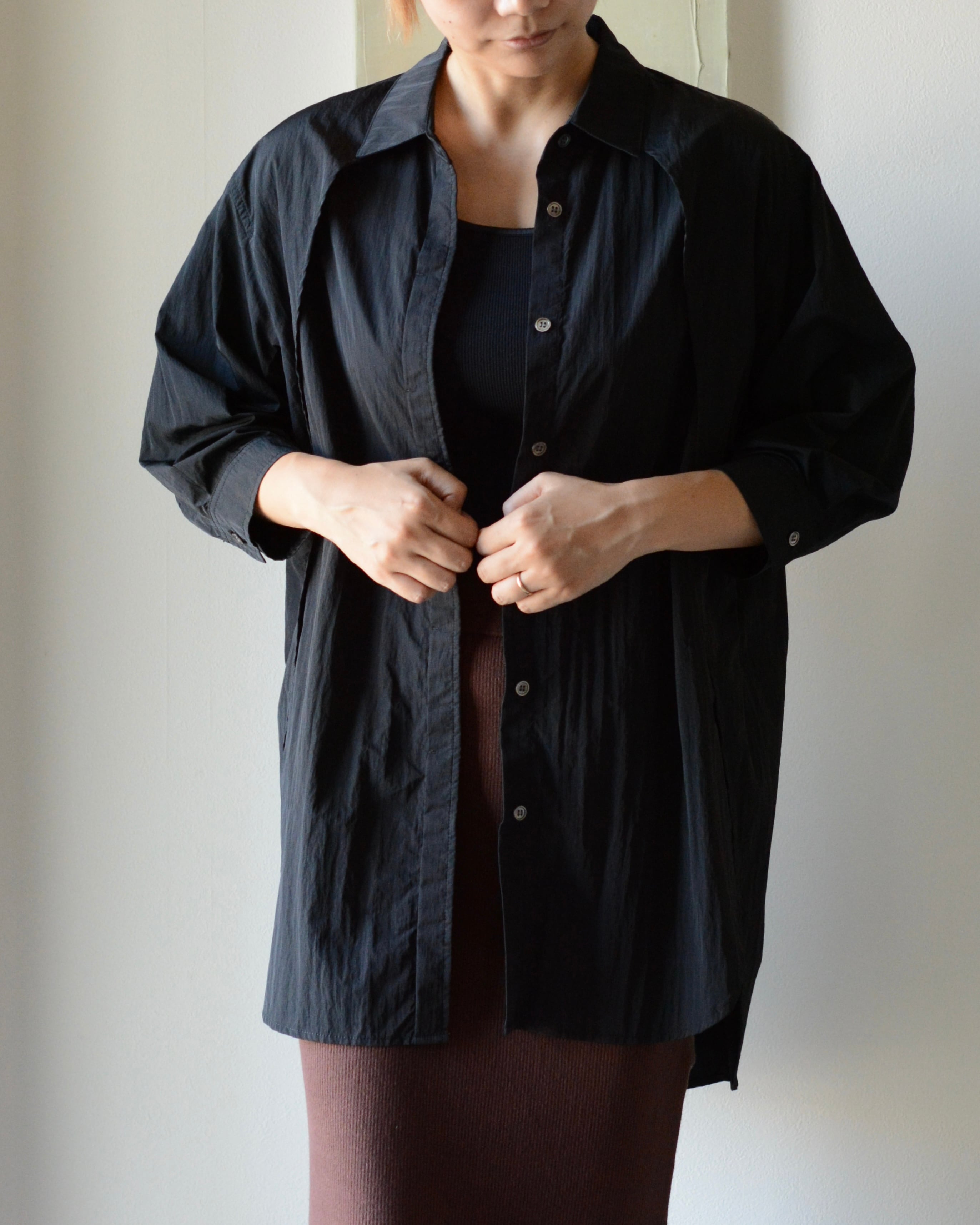 ヒップが隠れるくらいの着丈で、お袖は7・8分袖と