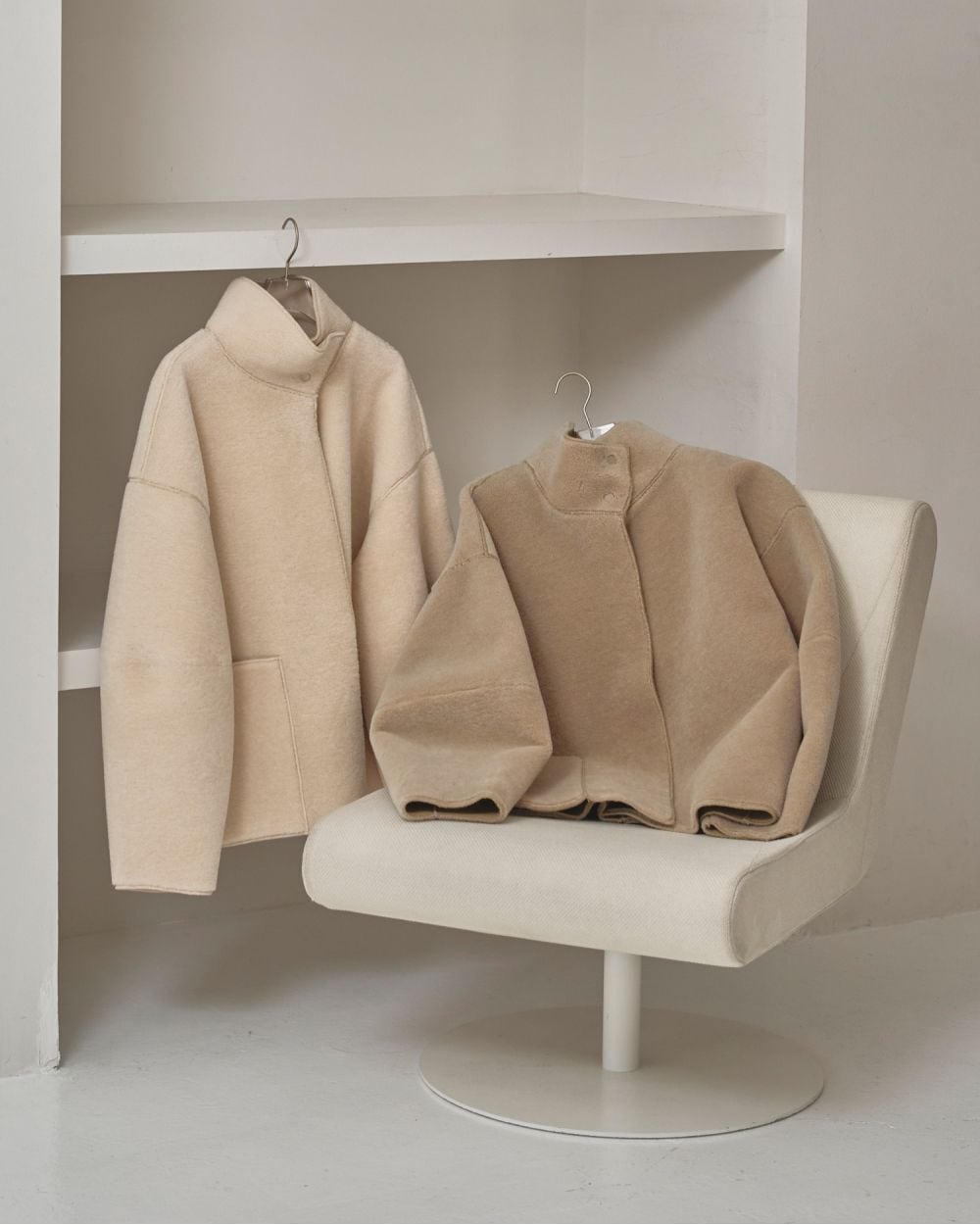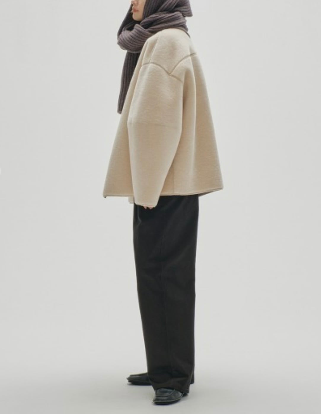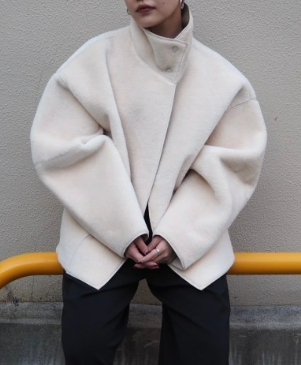 袖や横から見た時のシルエットをより立体的に。ヒップに被る丈感で、