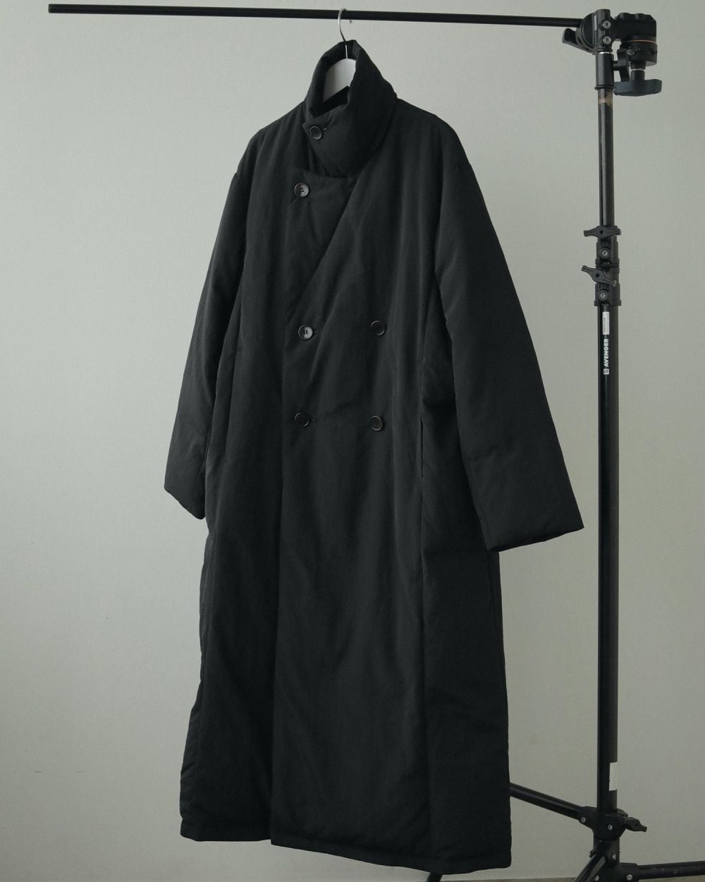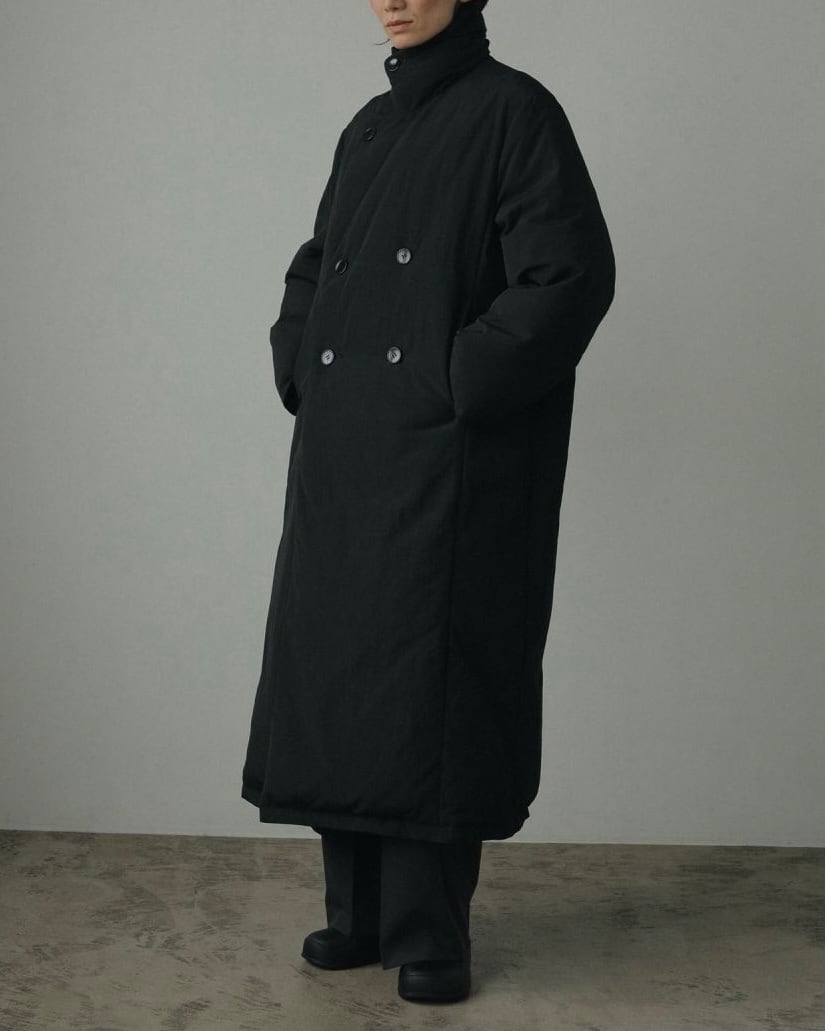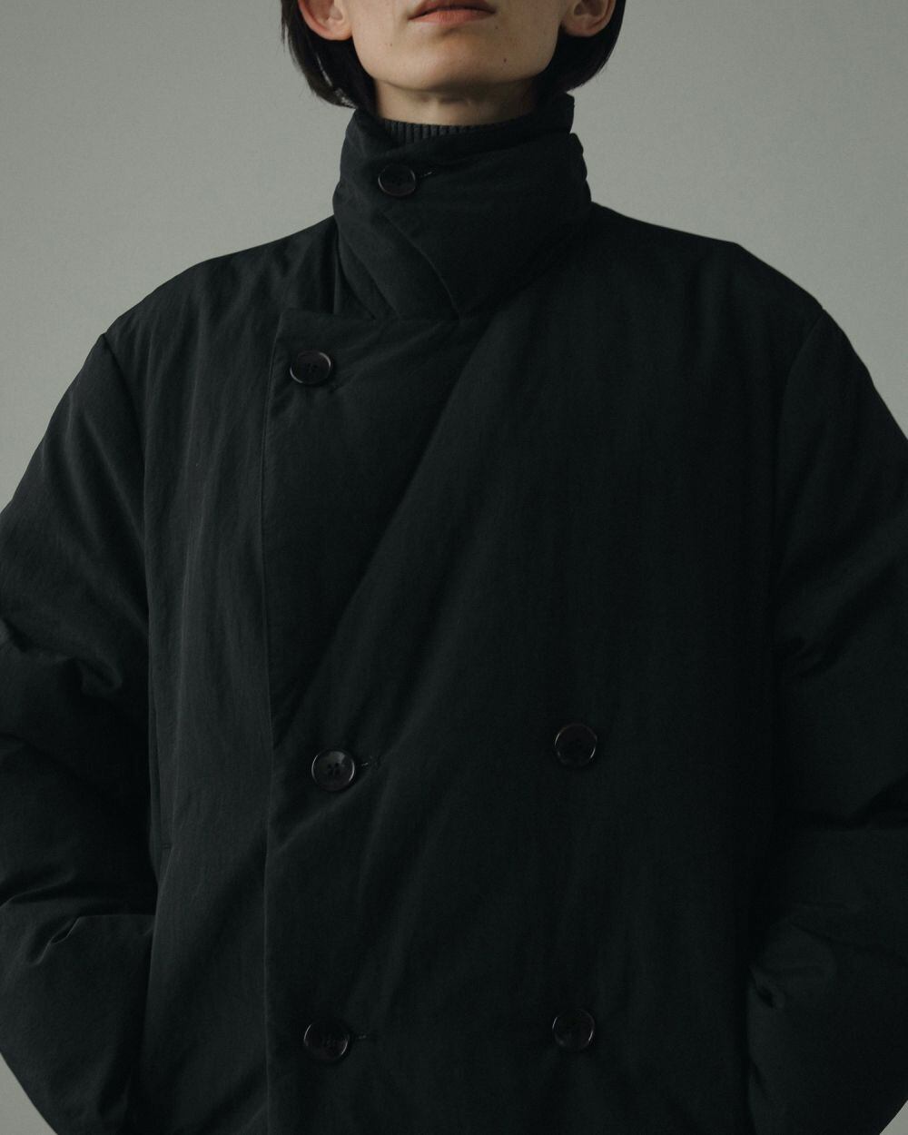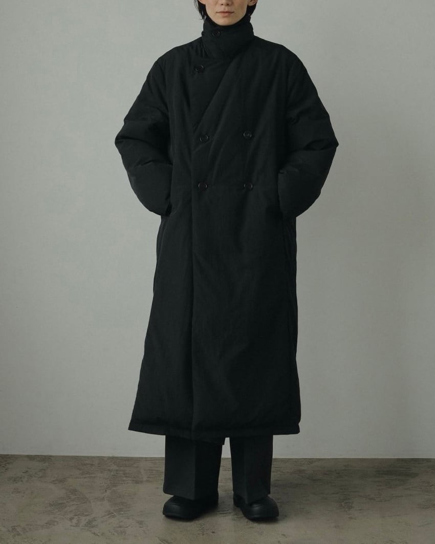 スタンドカラーにもなるダウンコート。暖かく軽く、