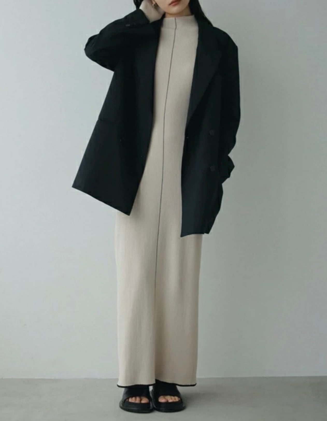 重ね着したときもスリットやラインのデザインが引き立ちます。